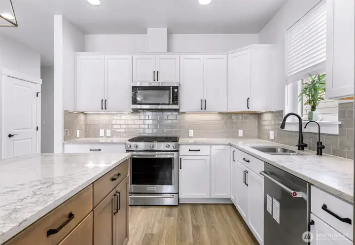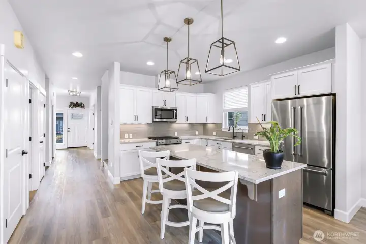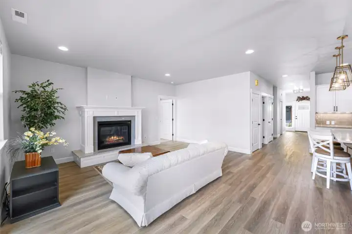 Welcome to Woods Point, a premier gated 55+ community designed for comfort and connection! Enjoy carefree living with HOA-maintained lawns in this beautifully crafted Landed Gentry Garden floor plan. Offering 2,372 sq. ft., this home includes 3 bedrooms + study, 2.5 baths, a spacious great room upstairs, and a 2-car garage. The main-level primary suite adds convenience, while the open concept design seamlessly connects the kitchen, dining, and living areas. Upgrades include quartz counters, LVP flooring, a cozy fireplace, and a covered front porch overlooking a fully landscaped and irrigated yard. Residents at Woods Point enjoy exclusive access to a private community center, a central park, and pickleball court.