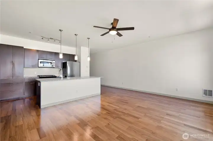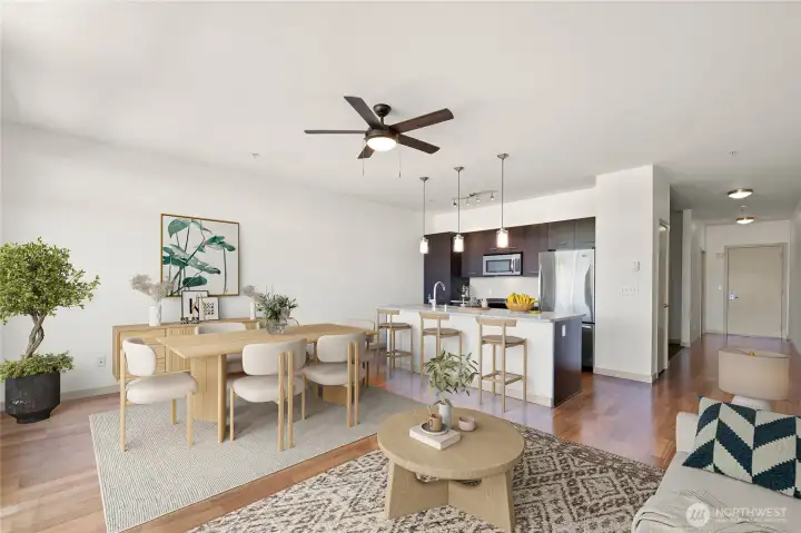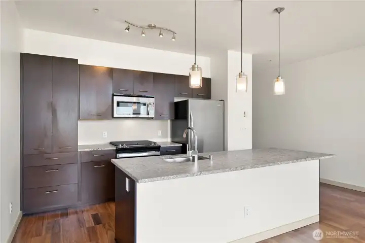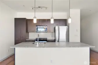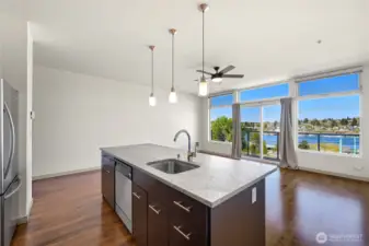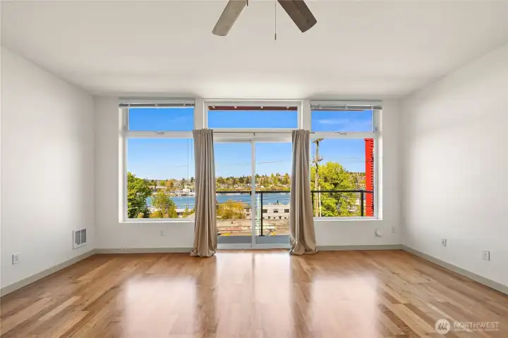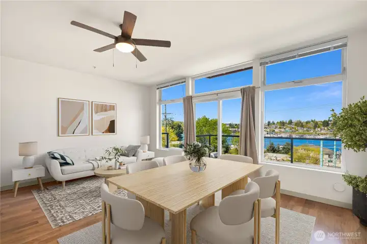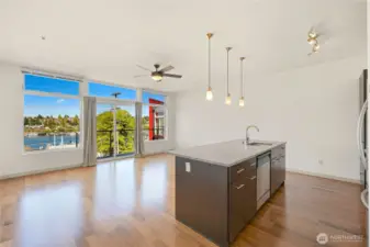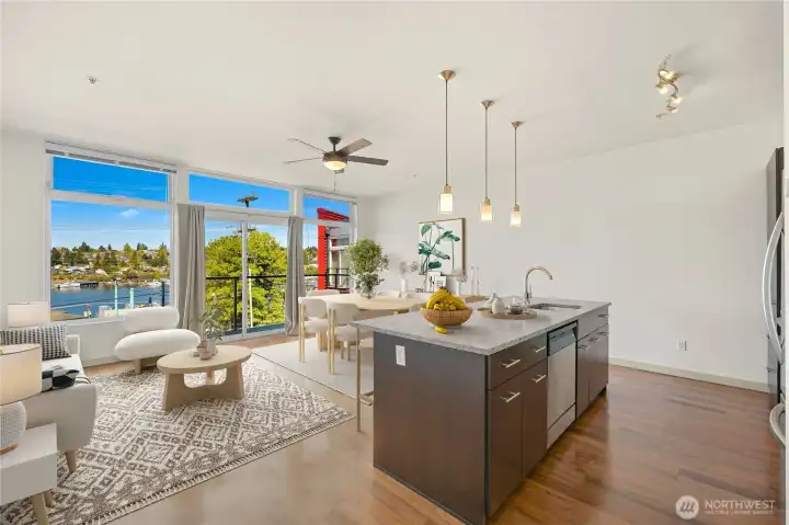 Modern, west-facing 1-bedroom condo with panoramic views of Lake Union & the Ship Canal Bridge. This light-filled unit features an open layout, oversized windows & 9' ceilings for an expansive, airy feel. The kitchen is equipped with wood cabinets, granite countertops, a brand new gas cooktop and plenty of room to entertain. Features include hardwood floors throughout main living space, tiled bathroom with soaker tub and quartz countertops, plus extra storage on the same floor and a great parking spot in the underground parking garage. Outside, enjoy a fully landscaped courtyard with a grill station and lounge areas. Live steps from UW, Lake Union, local parks, and Seattleās best dining. Pet-friendly and right on the bus line to downtown!