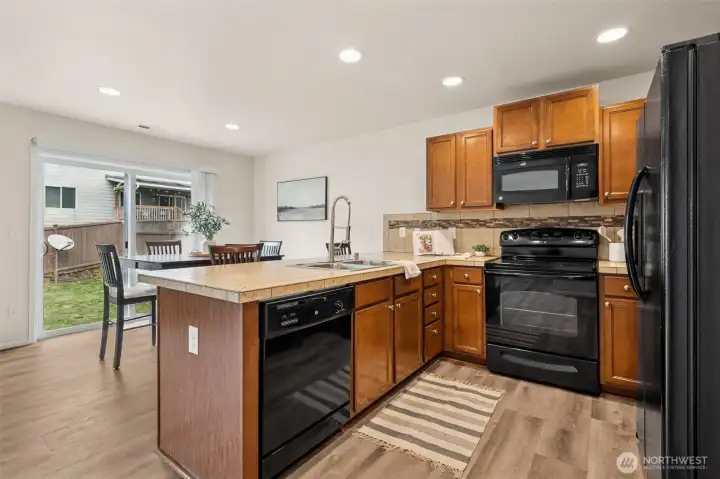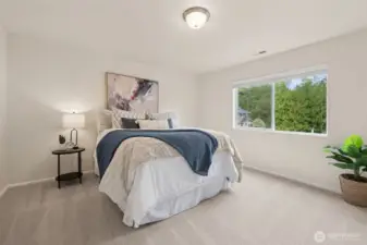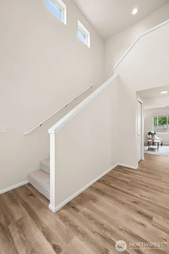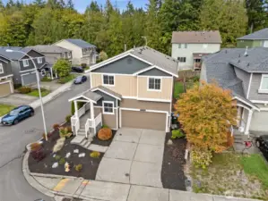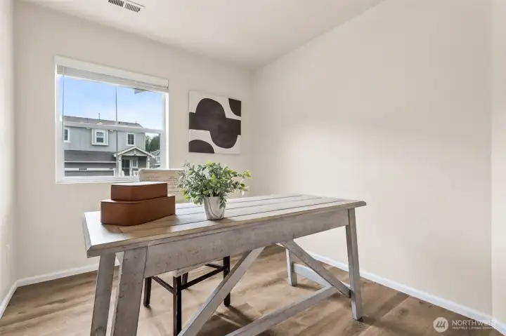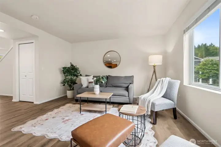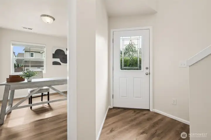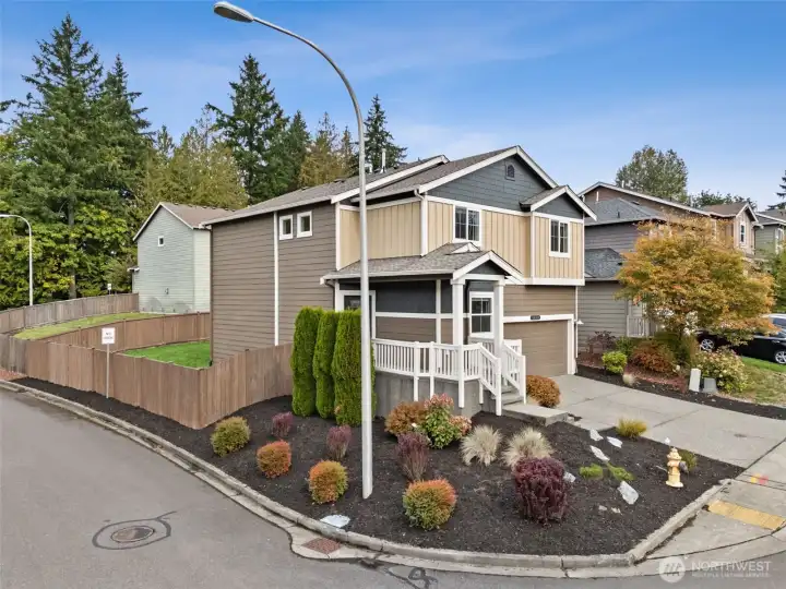 Situated on a desirable corner lot, this updated 4 br + den, 2.5 bth home features a 2-car garage & a fully fenced yard, offering great privacy. The open concept creates a spacious & inviting atmosphere, w/ all kitchen & laundry apps included for added convenience. A versatile main floor den serves perfectly as a guest bdrm, home office, or fitness space. The primary suite includes a walk-in closet & newly updated vanity w/ quartz countertop. 3 addl bdrms, a full bth, & conveniently located laundry rm complete the upper level. Stay cool during the summer months w/ CENTRAL AIR CONDITIONING. Enjoy the nearby neighborhood park, convenience to shopping, dining, schools, and easy access to I-5. All new flooring throughout & interior paint.