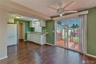 NEW ON MARKET!*South Tacoma charmer with an oversized detached garage + plenty of parking!*Same owner for the past 20 years*Fresh interior paint & new vinyl in the bathrooms just completed*Low maintenance laminate floors running throughout the main level*Spacious family & dining rooms provide ample space for furniture + entertaining*2 bedrooms & 3/4 bath on main level*Kitchen offers white cabinets & all appliances*Large primary suite encompasses the entire second floor, complete with attached bath, walk-in closet, & own private balcony*Great overall layout, and don't forget about the heat pump, which also provides A/C for hot summer days*Quiet area, corner lot, fully fenced yard w/shed, and great a commuter location close to I-5