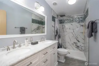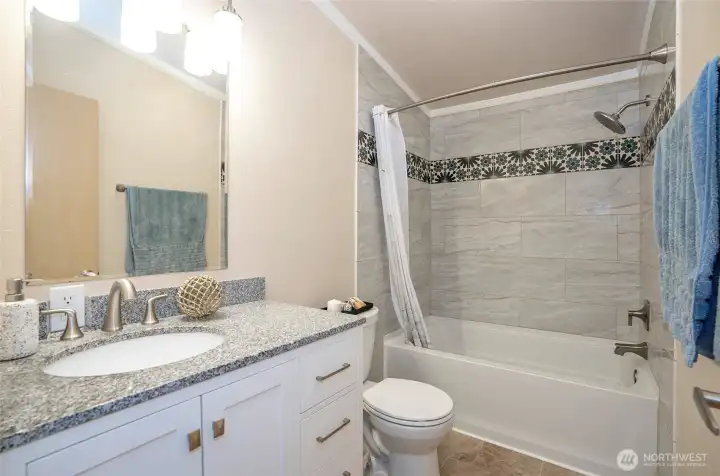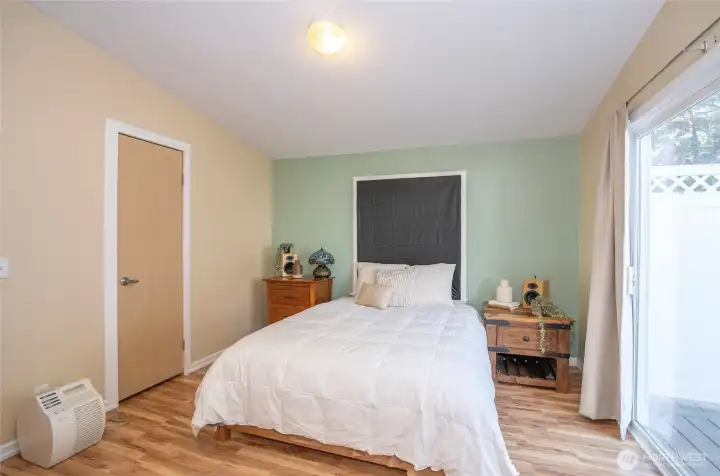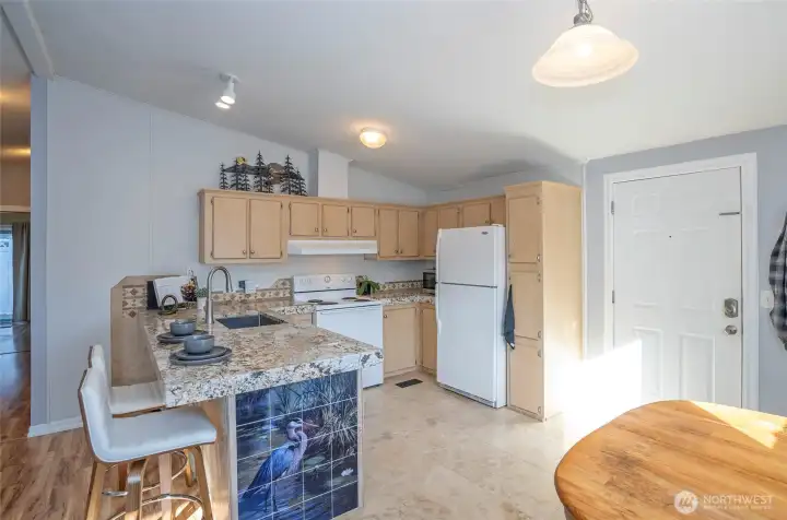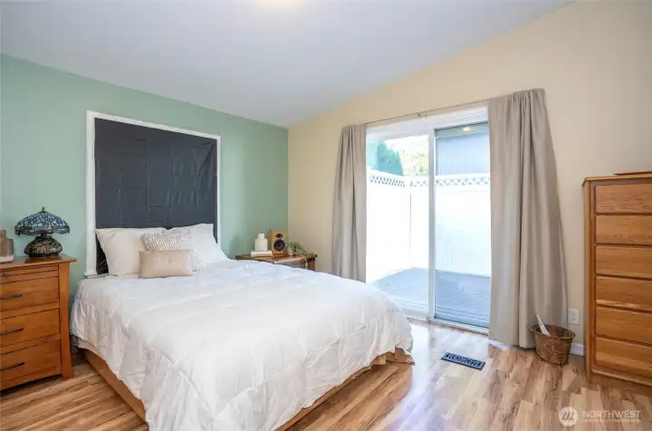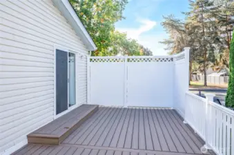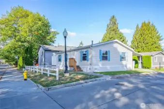 Welcome to this beautifully maintained manufactured home located in the inviting, all-ages Spaid Unique Manor. This updated 3-bedroom, 1.75-bath home features laminate hardwood flooring throughout most of the interior and energy-efficient double-pane vinyl windows. The spacious primary suite includes a remodeled ensuite bathroom with dual sinks and a private sliding door that opens to a rebuilt Trex deck with privacy fencing—perfect for relaxing or entertaining. An 8x8 storage shed is conveniently located just off the deck. Enjoy the updated kitchen with ample counter space and generous cabinetry. Step into a warm and welcoming community, ideally located just minutes from local shops, dining, and scenic parks.