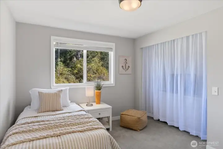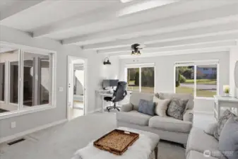 Exceptional opportunity - Main level living rambler, meticulously renovated by current owner, with detached/oversized 2-car garage & well appointed, fully equipped detached 673sf studio. This property marries best of city living w/rural residing. Mins to all conveniences in the city of Oak Harbor, but a world away on almost 3 bucolic acres. Simplicity reigns inside the home. Light&airy w/wide open&sensible living spaces, plus gorgeous finishes at every turn. The studio, with living,dining,kitchen,bedroom,bathroom&laundry - is turnkey. From the oversized patio of main house or back porch of studio, enjoy astounding views&sunsets over the adjacent marsh. This property features NEW ROOF,sport court,RV Parking&plenty of room for urban farming.