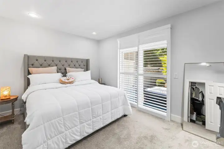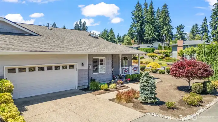 Stylish One-Level Duplex Style Condo on a Corner Lot. No HOA Dues! This beautifully maintained 3 bedroom, 2 bathroom home, offering 1471 sq ft of thoughtfully designed living space. Modern Features, elegant custom blinds, a contemporary casing package, and abundant natural light. The bright kitchen flows seamlessly into the living and dining areas, perfect for everyday living or entertaining. Retreat to the spacious primary suite featuring a soaking tub, separate walk-in shower, and generous closet space. French doors open to a dedicated office or 3rd bedroom. Step into the beautifully landscaped backyard, complete with a gas-plumbed line ready for your grill. A/C and an attached 2 car garage.