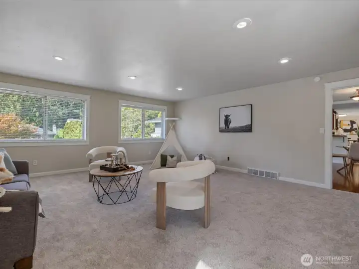 One level living in the desirable Maywood Hills neighborhood just min from vibrant Main Street Bothell's locally owned coffee shops, boutiques, & restaurants. Light-filled, charming & thoughtfully updated throughout, featuring an open kitchen w/ granite counters, stainless appliances & breakfast bar that flows into the dining & living spaces. Cozy living room w/ rich millwork & custom wainscoting adding timeless character, a spacious family room. primary suite w/ tile shower, fresh interior paint, & new carpet in all 4 beds. Oversized 2-car gar, tons of storage & private, sun-drenched backyard, with new deck, & space for a DADU. Prime location near 405, UWB, trail access, parks, & award-winning Northshore Schools.