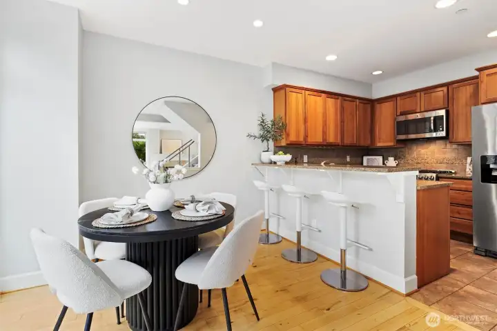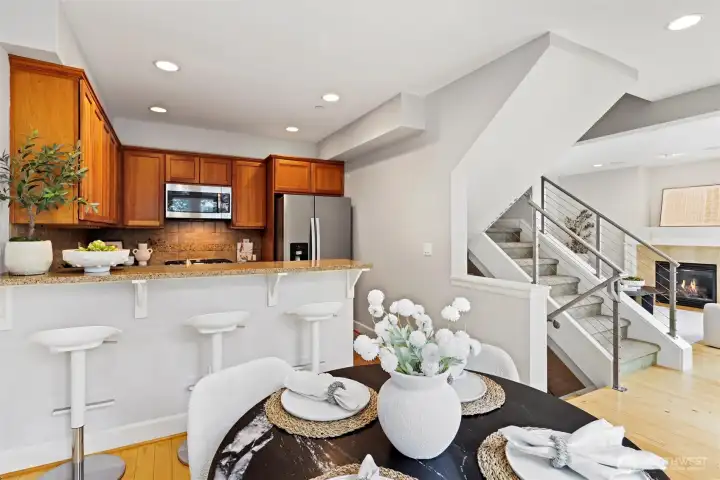 Experience urban living at it's finest in this fantastic Fremont zero-lot-line home. The bright corner unit features floor-to-ceiling windows that fill the open living space with natural light. Kitchen with breakfast bar and dedicated dining space. Real hardwood floors. Each of the three bedrooms offers its own en-suite bath, providing privacy & comfort for all. A stylish lofted office area adds flexibility for a home office or another chill space. Enjoy a sunny corner lot with hard to find light filled yard space. All new interior paint, including the garage. Close to Fremont’s vibrant shops and dining. Easy commute as it is accessible to HWY 99 but the tree lined streets feel neighborly and active. No HOA dues. Pre-inspected.