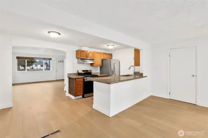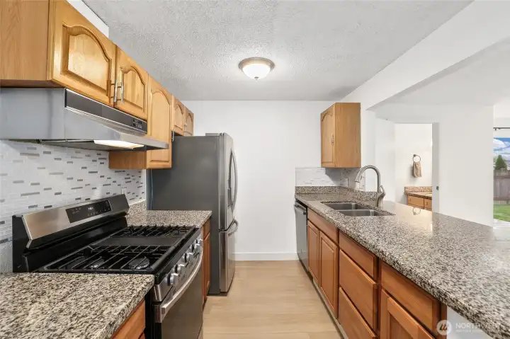 Move-in ready and beautifully refreshed! This charming rambler shines with a brand-new roof, fresh paint, new laminate and carpet flooring, and newer furnace and water heater. The kitchen is the hub of the home and features granite counters, and opens to bright, spacious living and dining areas—perfect for entertaining or relaxing. You’ll love the two large living rooms, roomy bedrooms, and natural light throughout. Outside, enjoy a fully fenced yard, storage shed, and a large detached garage with easy alley access. Close to schools, shops, restaurants, and freeway—everything you need is right at your fingertips!