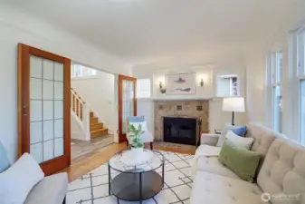 Charming Phinney Ridge Craftsman is ready to welcome you home! Step into sunny living room with cozy gas fireplace. Glass French doors open to dining room, setting the stage for intimate gatherings! Cheerful kitchen is full of light & storage. One bedroom and full bathroom complete main floor. Upper level, primary bedroom is a dreamy retreat! Tons of space, bright ensuite bathroom, beautiful skylights, & wall of windows + your own private deck to take in neighborhood and Rainier views! Lower-level hosts 3rd bedroom + bonus room (use as office, guest room, or storage!) Boasting detached garage, off street parking, fenced yard, & sited just between all that Phinney Ridge & Greenlake have to offer! You can have it all!