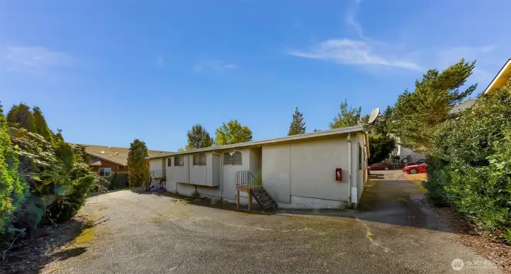 Excellent investment opportunity close to Western Washington University! This 4-plex offers four spacious 2-bedroom, 1-bath units with strong rental appeal near campus, shopping, transit, and downtown Bellingham. Each unit has a private entrance with front porch, and private balcony. Shared coin-op laundry and storage space for all units. Rent all or live in 1, rent the others! The property sits on a generous lot with convenient parking and easy access to I-5. Development potential for additional units — up to approximately 12 total on this parcel. A solid income property today with room to explore future options. Newer TPO roof.