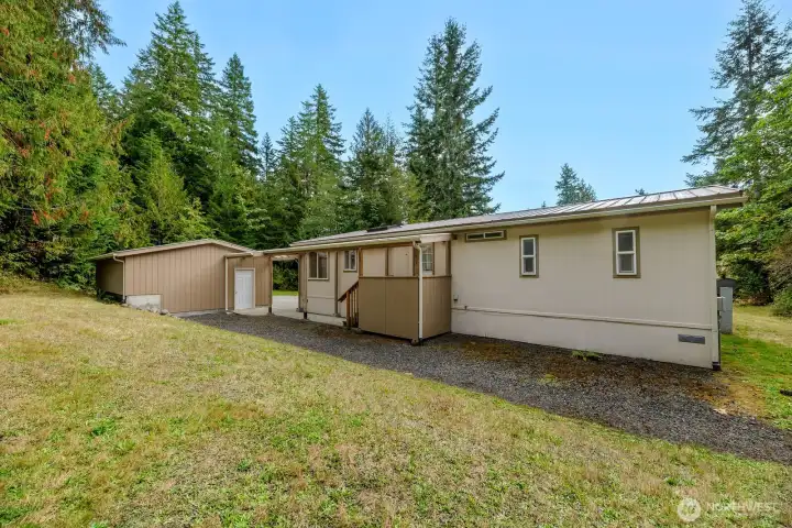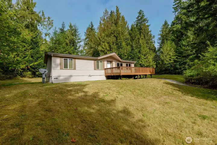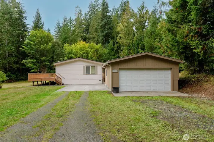 Ready to enjoy the peace and quiet of country living? Look no further than this 2 bed/2 bath manufactured home on over 2 acres. Home has approximately 1150 sq feet with an open layout and is move in ready. Huge deck in front for easy entertaining or relaxing in solitude. Covered breezeway in back connecting to detached double car garage and patio area. Fruit trees and room to garden. Wooded acreage keeps it private. Enjoy the freedom of No CC&R's and No HOA. Conveniently located close to Salt Creek Recreational Area and Crescent Beach with a short drive to both Lake Sutherland and Lake Crescent.