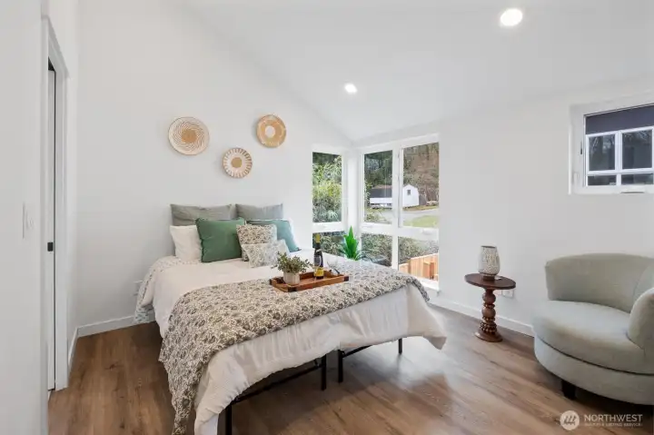 Don’t miss your chance on the lowest-priced standalone home in all of West Seattle! This charming residence blends modern comfort with thoughtful design, featuring stainless steel appliances, quartz countertops, and beautifully crafted wood paneling. Vaulted ceilings and large windows create a bright, open feel, while energy-efficient heating and cooling keep you comfortable year-round. Take advantage of your own private fully fenced yard, ideal for relaxing or hosting guests. Plus enjoy the convenience of a dedicated off-street parking space. Tucked between Longfellow Creek and green space, this home offers a quiet retreat just 10 minutes from downtown Seattle. A rare find at this price, it’s the perfect opportunity into homeownership.