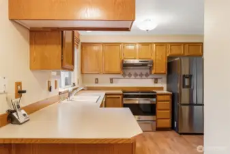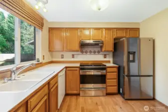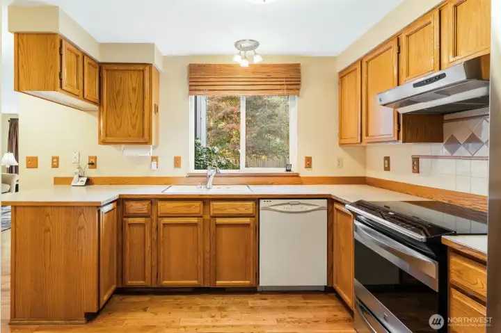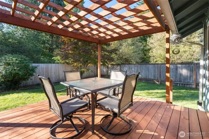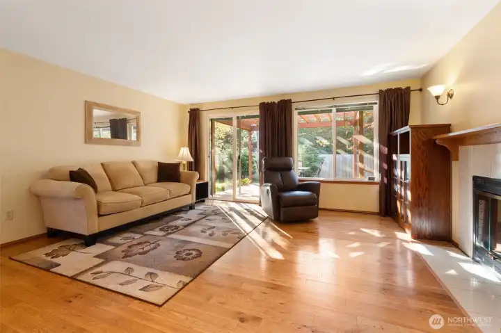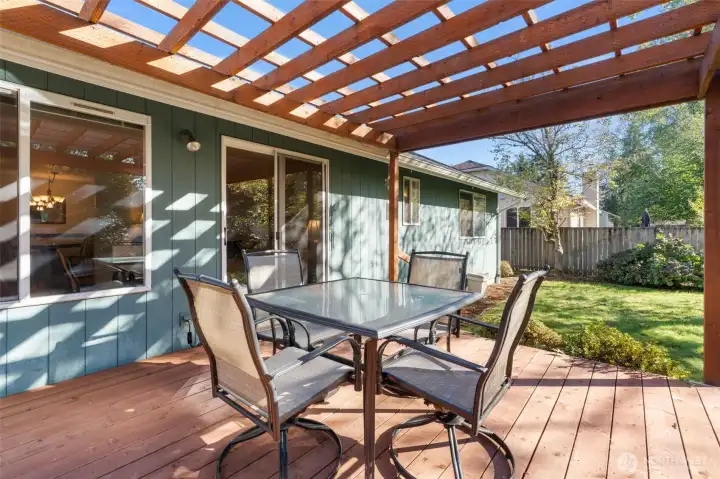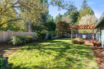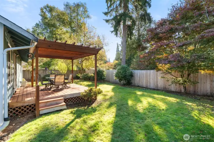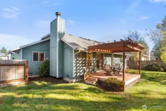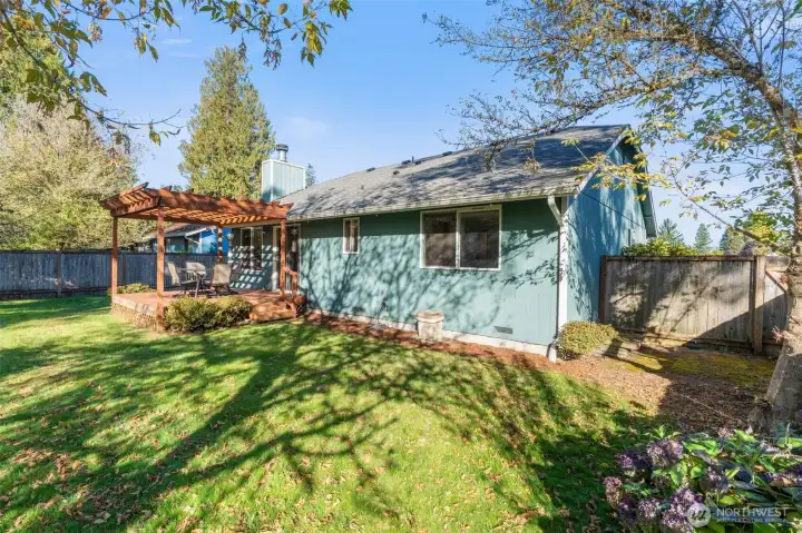 Beautifully maintained 3-bed, 2-bath one-story home on a spacious, fully fenced lot w/ new cedar fencing! Bright south-facing living areas, large windows & gleaming wood floors create a warm, inviting feel. Enjoy an easy indoor-outdoor flow from the living room to a new deck w/ pergola (2024) and serene landscaped backyard—perfect for relaxing or entertaining. The kitchen offers peaceful views, functional counter layout + pantry, newer SS appliances w/ split utility space. A large primary suite features an oversized shower and walk-in closet. New crawl space insl./vapor barrier/ducts, life in roof, large driveway & roomy 2-door garage. $5K buyer credit for chimney siding repair w/ acceptable offer. Close to shops, schools, parks & freeway!