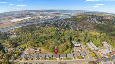Exceptional privacy with no neighbors behind! This gorgeous 9-year-young Fife Heights home is much larger than it appears, perched on a bluff with sweeping views of greenery, Commencement Bay, and the mountains. The chef’s kitchen boasts an oversized island, gas range, abundant cabinetry, and plenty of counter space—ideal for cooking and entertaining. The main floor primary suite includes a 5-piece bath and walk-in closet. Downstairs offers a spacious living area, 3 bedrooms, a finished bonus room with barn door, and flexible options for work or play. Two decks, two fireplaces, newer AC, and extensive storage complete this inviting home, tucked in a private neighborhood yet close to freeways, shopping, and dining.