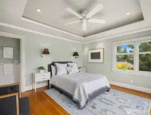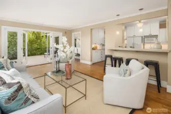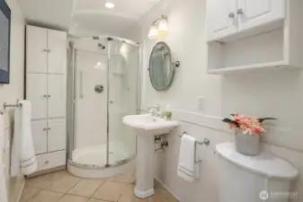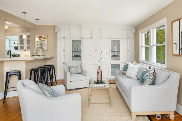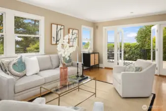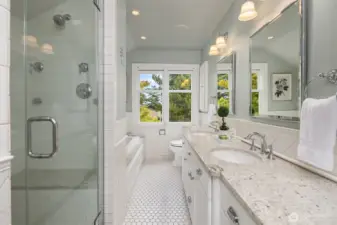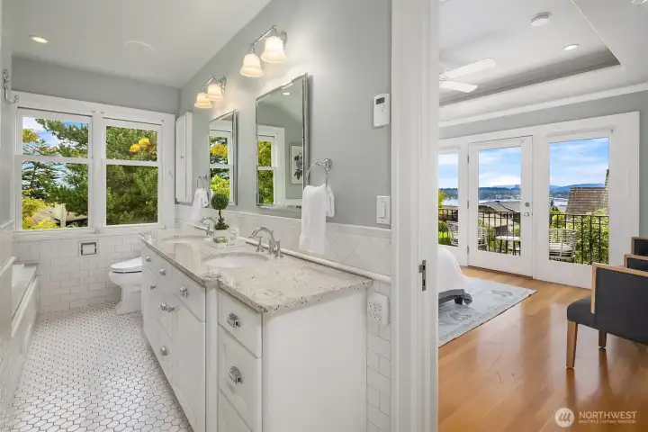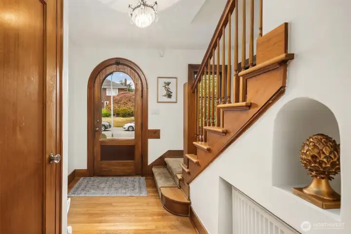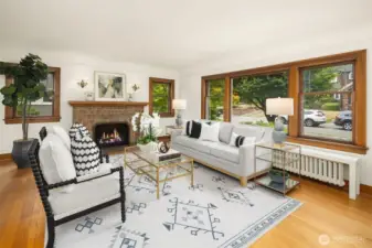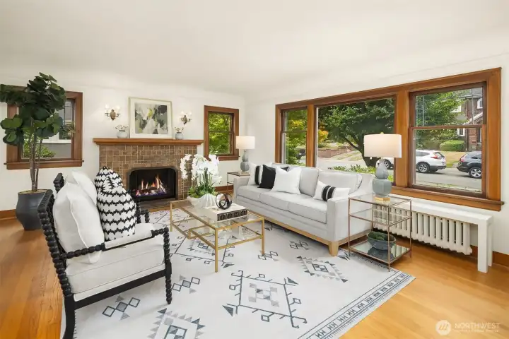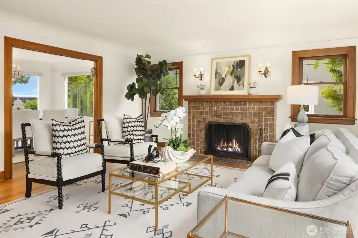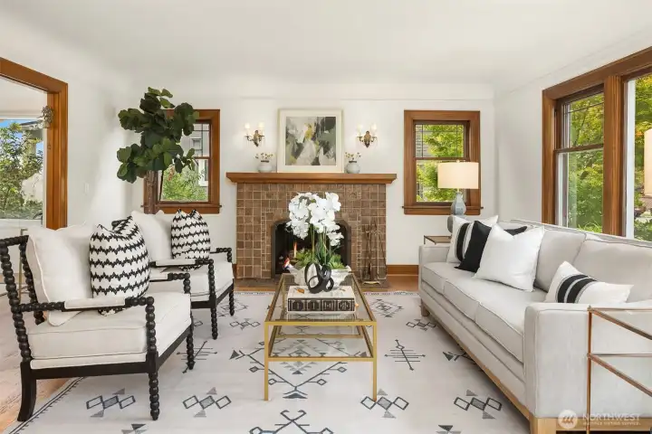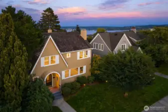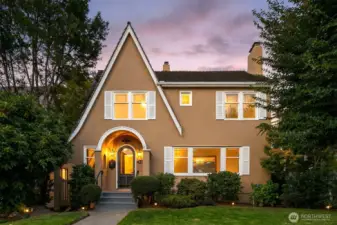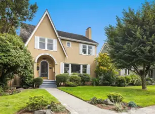 Exquisite Laurelhurst Tudor, beautifully remodeled and brimming with timeless charm. Light-filled living room with elegant fireplace flows to formal dining and gourmet kitchen with bar seating, high-end finishes and seamless family room connection. French doors open to expansive deck with built-in firepit and multiple seating areas, ideal for entertaining. Upstairs offers 4 spacious bedrooms and 2 baths, including a luxurious primary retreat with private deck, walk-in closet, spa-like bath with soaking tub and steam shower, plus breathtaking views of Lake Washington. Lower-level features large rec room with fireplace, ¾ bath, laundry and storage. Sited on a coveted street offering a two-car garage, plus covered parking!