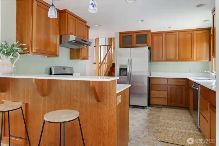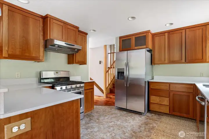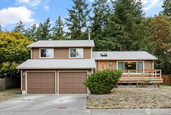 Perfectly positioned in the city of Oak Harbor, this move-in ready 3 bedroom, 2.25 bath sits on a large lot w/fully fenced back yard. A welcoming entry leads you into the light-filled living room, dining room, & updated kitchen w/SS appliances, quartz countertops, & warm cabinetry. Upstairs you'll find the primary bedroom w/ensuite, 2 bedrooms, & full bath. Downstairs boasts a family room, great built-ins, a woodstove for cool winter nights, laundry room & 1/2 bath. Add in the TRIPLE pane windows, tankless water heater, an outbuilding for storage or hobbies, covered deck & additional gathering areas & you've found the perfect place to call home! Minutes from NAS Whidbey, schools, shopping, parks, and more. Come see for yourself.