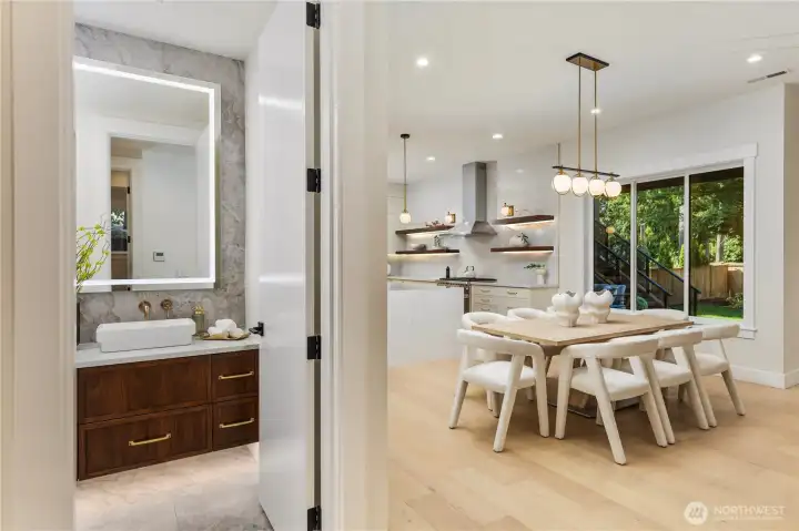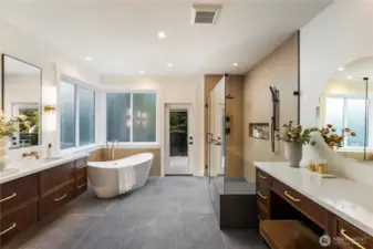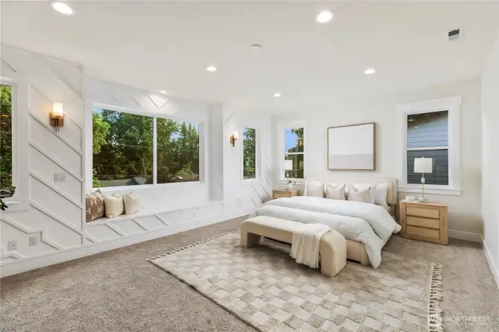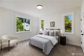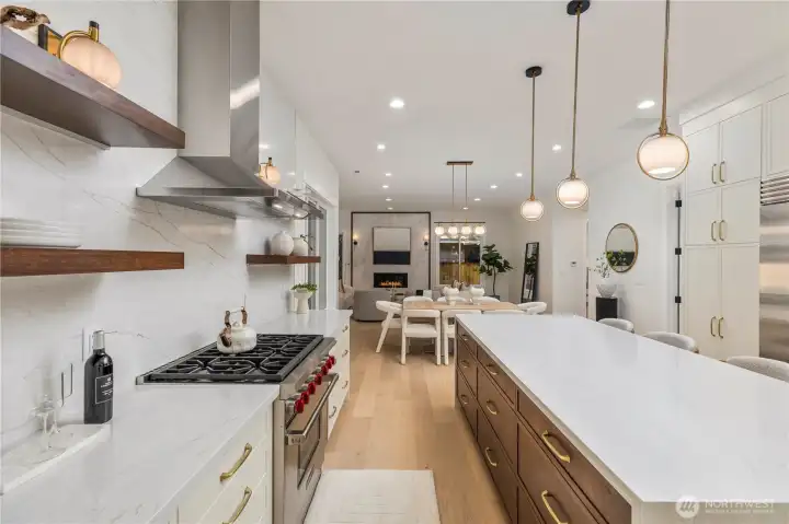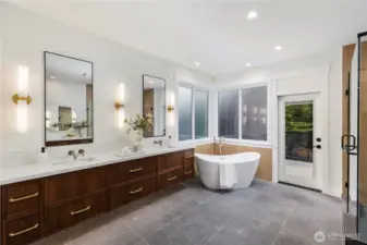 Artemis Homes presents a new construction home in the desirable North Rose Hill neighborhood. Blending modern design w/ everyday luxury. The chef’s kitchen has high end finishes, featuring Subzero & Wolf appliances, quartz waterfall counters, & 4-seater island w/ cabinet storage. Flows to a covered backyard deck for year-round entertaining & large flat backyard. Main level offers a private office, dual living spaces, laundry, powder bathroom,& covered deck. The primary suite is a retreat w/ spa-inspired bath, floating tub, heated floors, & walk-in closet w/ custom built-ins. Upgrades include security cameras, EV-ready, epoxy flooring in garage, smart integration, & home generator. Minutes to I405, DT Kirkland, Redmond, parks & trails!