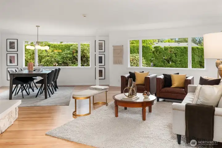 There’s an easy rhythm to life here – single-level living wrapped in light, calm, and connection. Large windows frame lush, private gardens, while gas fireplaces anchor spaces made for gathering. Refinished hardwoods, fresh paint, and new appliances bring timeless comfort. Living here means strolling to neighborhood parks, biking the Burke-Gilman Trail, or hopping on the Northgate light rail for fast access to the airport and downtown. The Community Center, school track, and neighborhood gatherings give this place a rooted, friendly feel. Tucked into a peaceful corner of Meadowbrook, with quiet streets, mature trees, and a community where people know each other. If you want a home you love and a neighborhood that loves you back, this is it.