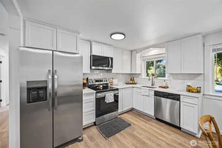 Fully renovated 4-bed, 2-bath home in a coveted Puyallup neighborhood minutes from freeways, shopping, and dining. Upstairs features an open kitchen, dining, and living area with new cabinets, quartz counters, custom tile backsplash, top-tier appliances, three bedrooms, a full bath, and a deck overlooking the fenced backyard. Upgrades include new windows, fresh paint, LVP flooring and carpet, updated doors and trim, two LED fireplaces, and an epoxy-coated garage floor. Lower level offers a huge family room, bedroom, and luxury bath. Mature landscaping, new fence, flower beds, RV parking, and freshly cleaned 50-year tile roof complete this move-in-ready home — it checks every box.