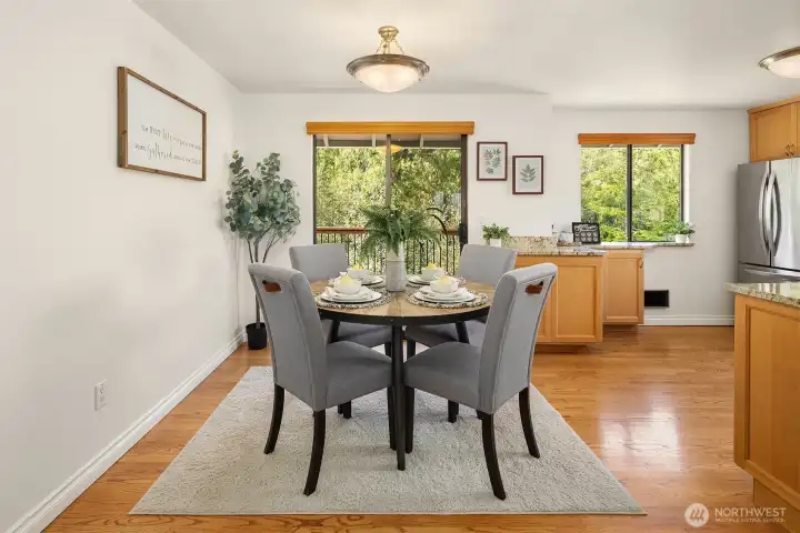 Tucked along a lush greenbelt, this elegant yet comfortable 4-bedroom, 3- bath home offers the perfect blend of privacy and convenience. Sun-filled interiors with fresh paint and beautifully maintained hardwoods create a warm, inviting feel. The kitchen features granite counters and quality finishes, opening to a spacious west-facing deck ideal for gatherings or quiet evenings. The primary suite includes a private ensuite and large closet. Peaceful backyard space and quiet neighborhood with generous parking and a prime location between Everett and Mukilteo - minutes to Boeing, I-5, and top amenities- this home delivers everyday ease with timeless style. 50 year roof -No HOA.