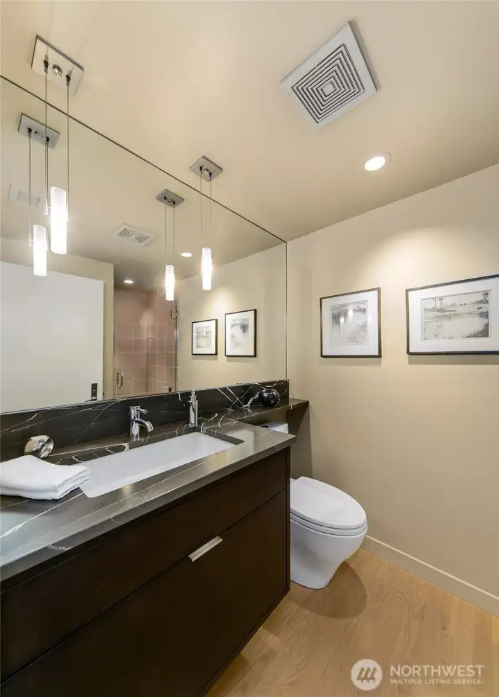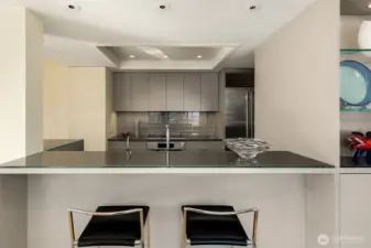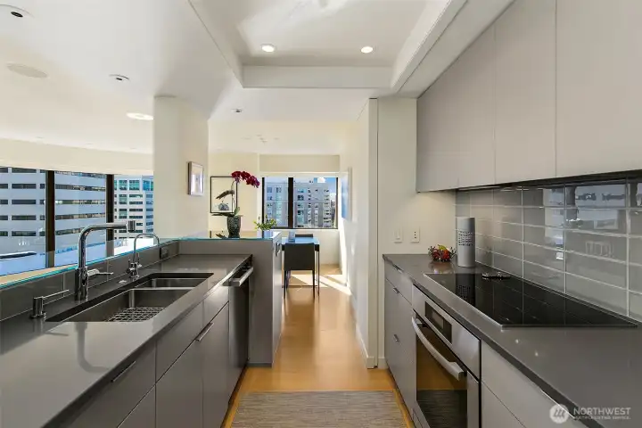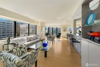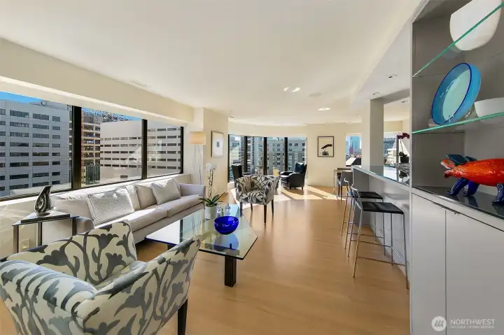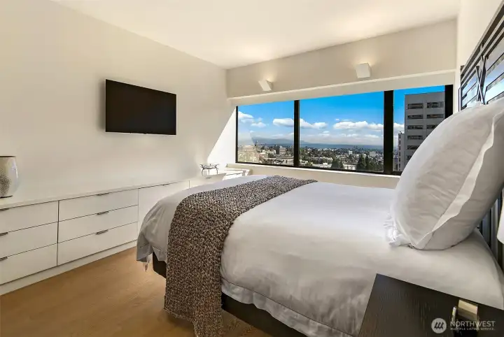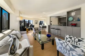 Step into effortless elegance at this beautifully remodeled First Hill condominium, where luxury meets convenience in a premier steel-and-concrete high-rise with 24/7 concierge, rooftop pool and spa, tennis and pickleball courts, and serene garden courtyard. Inside, refined design awaits—white oak floors, Carrara marble primary bath, quartz and limestone countertops, custom cabinetry, and Miele and Sub-Zero appliances. Enjoy a spacious entertaining area with wine closet. Southwest exposure with walls of windows, air conditioning, hospital-grade air purification, and filtered kitchen water. Includes electric vehicle charger, one oversized parking spot, and large storage unit. A true in-city oasis.