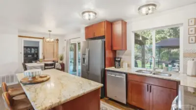 The home you have been waiting for has finally hit the market! Enter property through the quaint white picket fence and head inside to see all this open floorplan has to offer. Slab granite kitchen with breakfast bar and stainless appliance package. Living room + spacious family room. Updated bathroom with new vanity has full tile shower surround. You can exit through the sliding glass doors from the dining nook or family room to access the large fully-fenced back yard with recently installed entertainment sized patio that has covered + uncovered space for year-round enjoyment. This surprisingly secluded yard space is complete with firepit & shed is buffered with green space on 2 sides. In-home laundry. All appliances are included.