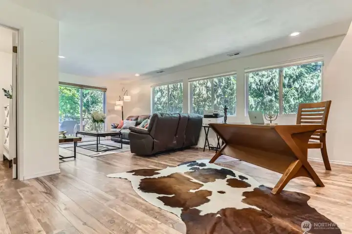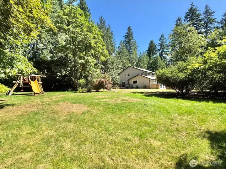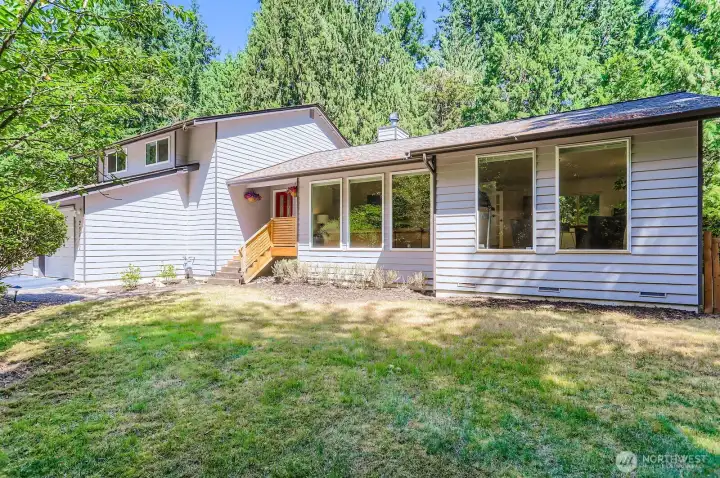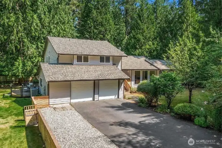 Newly renovated tri-level home on a peaceful 1.42-acre lot in Redmond. This spacious 3 or 4 -bed, 2.75 bath home features new roof, new carpet upstairs, fresh interior paint, new LVP flooring throughout the main. Fully remodeled kitchen w/ granite countertops, cabinets, stove & hood, all upgraded bathrooms, large family room, central A/C & two storage sheds. The fully fenced private oasis w/ lush landscaping, wooded trails, fruit trees, garden space, and a Rainbow Cedar play system with swings and slide. Two fenced composite decks offer the perfect space to relax or entertain. Top-rated Lake Washington Schools w/ quick access to highways, shops, and dining—this home blends comfort, privacy & prime location. Offer review by 10/13@3PM.