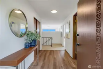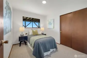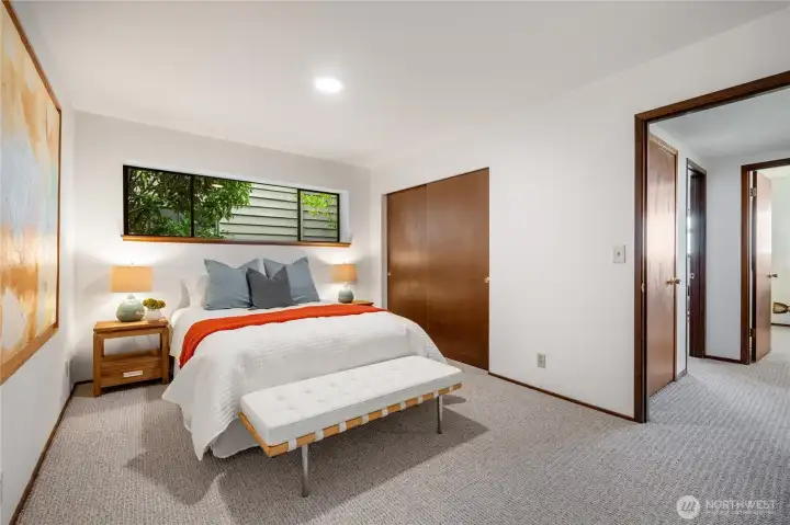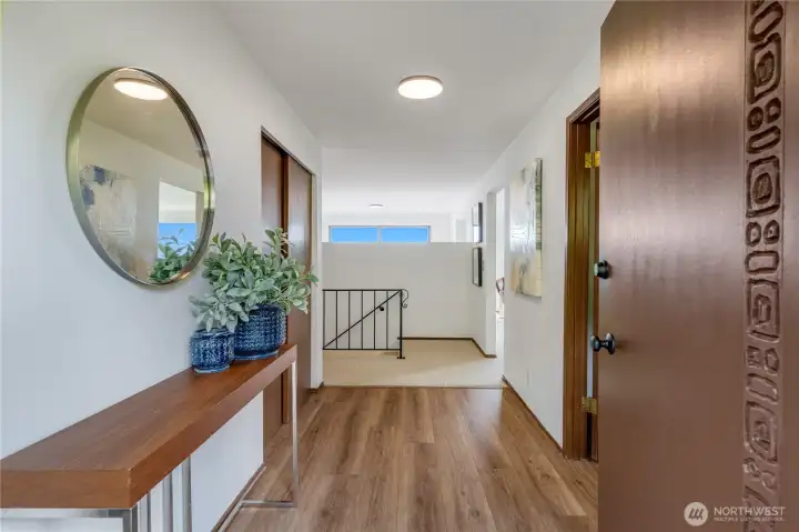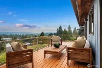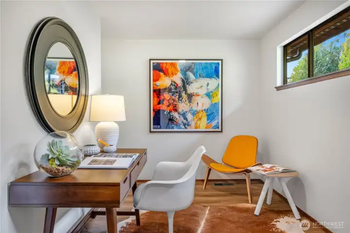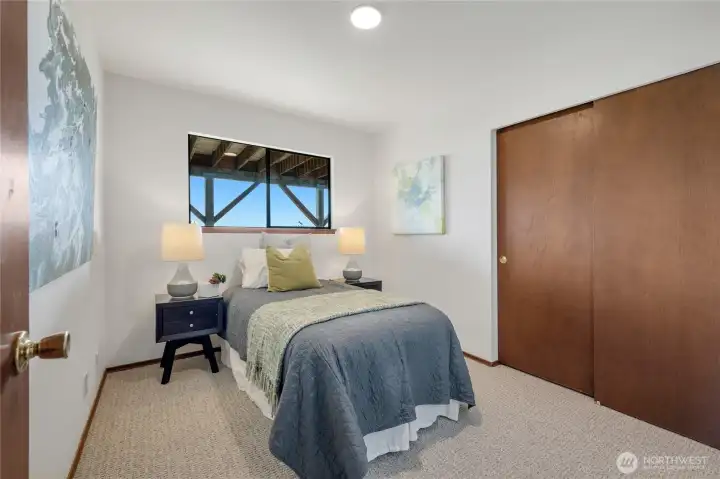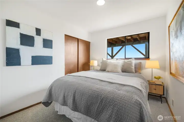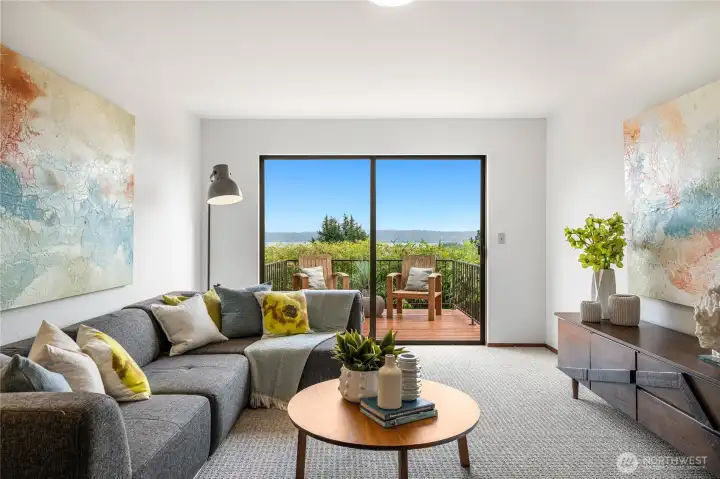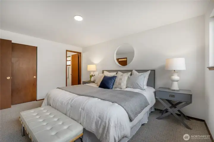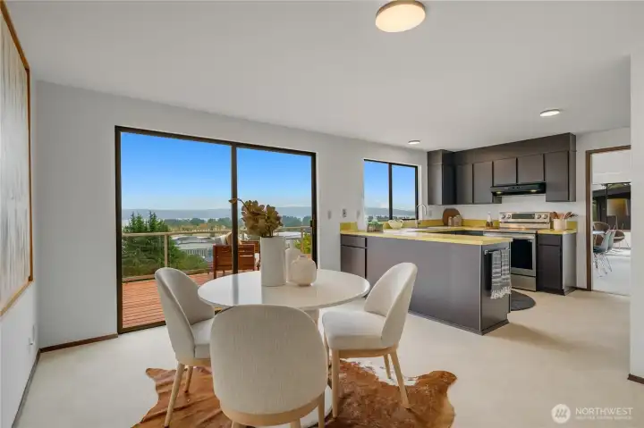 Grab a front row seat to the splendor of the Northwest! Generous windows embrace the main living areas of this 1968 custom home, filling the rooms with light. Wake to striking panoramic sunrise views over the lake and to the mountains, watch the seasons take hold, the glow of autumn paint the trees, and bright clouds roll across the sky. The open flow provides ample space for dinners and kitchen dance parties, for work and workouts, and a flexible footprint in which to shape the home of your dreams. The main floor primary has a sense of privacy and retreat, with four more bedrooms on the lower level as well as a family room. This home has an active transferrable membership in the View Ridge Swim & Tennis Club located just down the street.