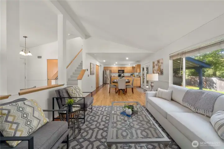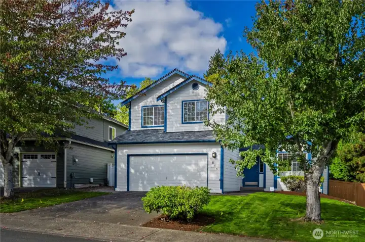 Welcome to this beautifully updated home in Lakeland Hills, just a short walk to Lakeland Hills Elementary. This 1,680 sq ft home features 3 bedrooms, 2.5 baths, and sits on a 6,787 sq ft fully fenced lot. Enjoy vaulted ceilings in the living and family rooms, a cozy gas fireplace, and a large kitchen with abundant cabinetry and countertop space. Fresh interior paint, brand new carpet, and laminate flooring on the main level make this home move-in ready. The spacious primary suite offers a large walk-in closet, while the covered patio and landscaped yard provide the perfect space for outdoor entertaining. Tucked on a quiet cul-de-sac, this home blends comfort, convenience, and charm.