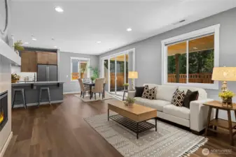 Refined, move-in-ready Richmond American resale on a serene greenbelt setting. Large windows and an open great room frame views of a thoughtfully designed, low-maintenance Asian-inspired zen garden with a forest backdrop, creating a calm, retreat-like feel. Enjoy year-round indoor-outdoor living from the expansive covered patio as woodpeckers and flickers visit the surrounding trees. This 4-bedroom, 2.75-bath home includes a main-floor bedroom with adjacent ¾ bath, gas fireplace with mantle, and an upgraded kitchen featuring 42” upper cabinets, quartz countertops, tile backsplash, oversized island, and generous dining space. Main floor offers LVP flooring, 10’ ceilings, 8’ doors, smart drapes, and honeycomb blinds. Beautifully landscaped front and back. No animals ever in the home—ideal for allergy-conscious buyers. Sumner–Bonney Lake School District. Ecobee Smart Thermostat with voice control & sensors, Lutron smart lighting, central air conditioning for year-round comfort and efficiency, Panasonic quiet bathroom fans with timers. Stay connected with Ethernet in key rooms, WiFi garage door opener, outdoor camera pre-wiring. Enjoy hassle-free outdoor living via auto WiFi irrigation, natural gas patio stub, extra outlets, and Leaf Filter gutter protection (lifetime warranty).