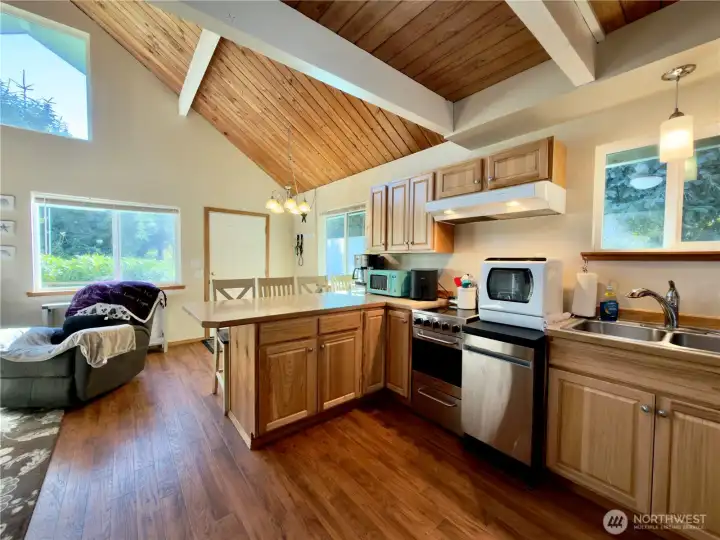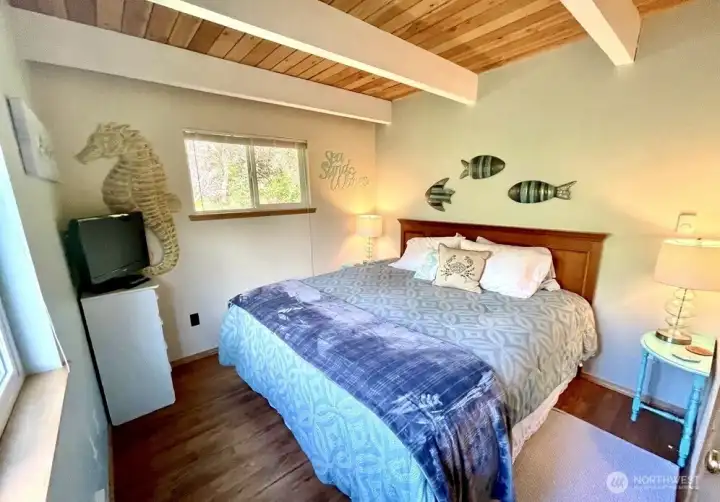 Charming Beach Retreat! The beach vibe is everywhere in this 2-bed, 1-bath home—minutes from the sand & close to town amenities! The open-concept living & kitchen area w/a large peninsula & pine cabinetry make this cutie live larger than you would expect. Vaulted wood ceilings add warmth & a spacious feel, while the upstairs loft is bathed in natural light, creating a cozy & inviting retreat. Step outside to a private, thoughtfully arranged yard perfect for entertaining or relaxing by the fire pit. Enjoy a seat on the deck, surrounded by green space that enhances the peaceful beach vibe. Whether you’re looking for a full-time residence, a weekend getaway, this property delivers that beach town lifestyle while being walkable to the sand!