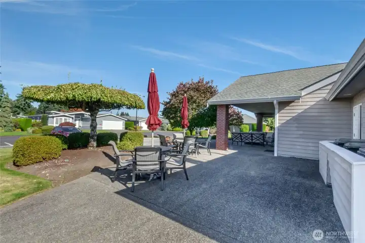 Welcome Home to Puyallup's Premier Gated Senior Community, Harvest Gate. This 2176 SF home with vaulted ceilings has a spacious kitchen with island and eat-in area. All appliances stay. Extra Large Primary Bedroom offers a walk-in closet, en-suite bathroom and gas fireplace. Extra finished room in garage is ready for your specific needs. Enjoy the AC for year-round comfort as well as a tankless hot water heater and built-in vacuum. The covered patio is perfect for relaxing or entertaining. The fabulous clubhouse features activities, games, card room, pool room, kitchen, shuffle board and pickle ball!