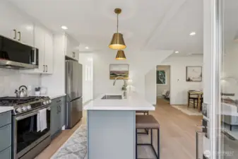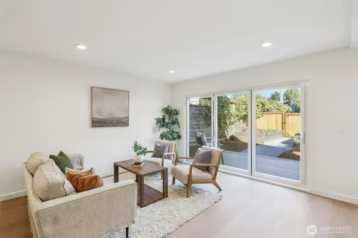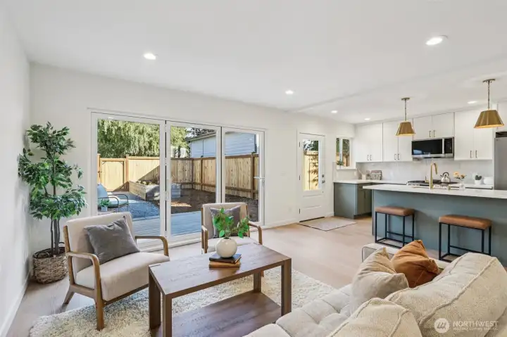 Stunning studs-out remodel with an effective year built of 2025! Every surface refreshed and reimagined in this modern 3-bed, 2-bath home. The open-concept living area opens through expansive folding glass doors to a spacious deck, beautiful garden space, and fully fenced yard—perfect for entertaining or quiet evenings outdoors. Inside, thoughtful updates, clean lines, and timeless finishes create a bright and welcoming feel throughout. All new systems for peace of mind. Two off-street parking spaces complete this turnkey home in a prime North Seattle location near Greenwood, Green Lake, and future light rail. Truly move-in ready and better than new!