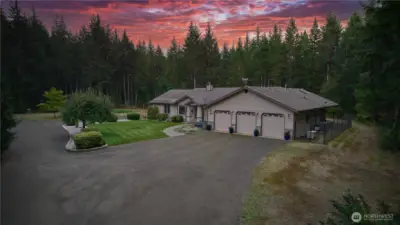 Beautiful 2,621 sq foot rambler on 2.5 acres of meticulously landscaped property. Home has 3 bedroom, 2 full baths & 2 ½ baths. Home is laid out for entertaining with open concept kitchen and living room with adjacent slider to the beautiful back yard. Custom built bar and even a wine refrigerator. This home has attached 3 car garage and a detached 1,200 sq ft garage/shop for all of your hobbies. This shop even has covered bays for keeping most of your toys out of the weather. Don’t forget the ‘retreat shed’ built for quiet time in the serene rear yard. For added protection against possible power outages is an instant on Generac system that is connected to propane tank. Don’t miss the opportunity to call this home yours.