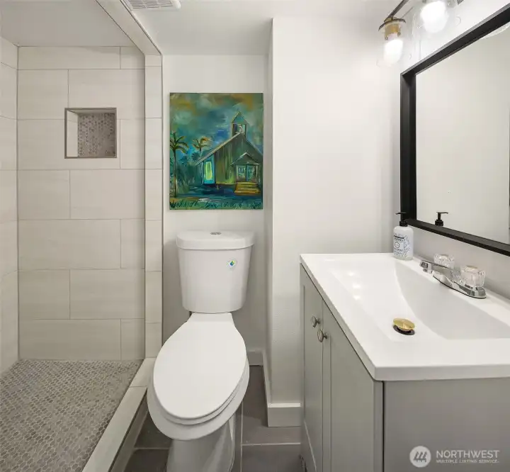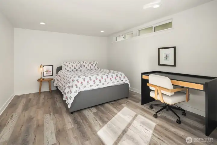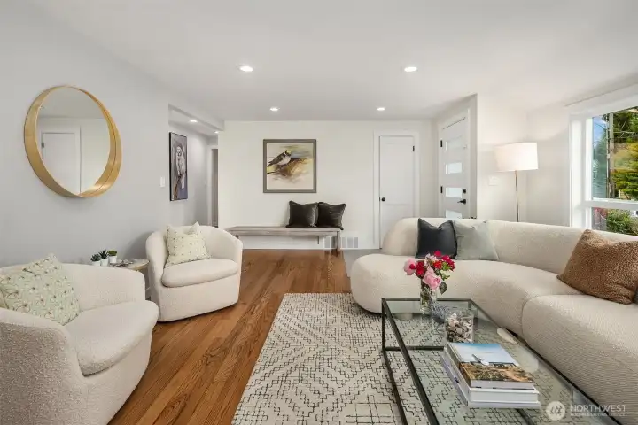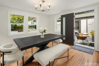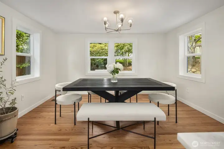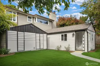 Light-filled mid-century home just minutes from Magnolia Village! The open-concept living, kitchen, and dining areas flow seamlessly to a private backyard and patio, perfect for entertaining. Features include 3 spacious bedrooms and 3 updated baths. The south-facing primary suite offers a walk-in closet, updated bath, and French doors to the patio. A detached 200+ sqft dwelling with a three-quarter bath adds flexible space—ideal for guests, home office, studio, or rental income. Move-in ready! This gem is conveniently located to Amazon, Expedia, South Lake Union, Discovery Park & Downtown!
