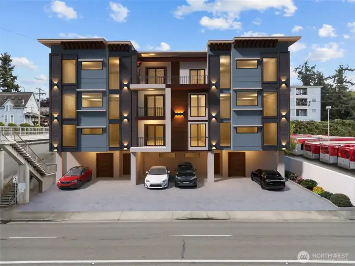 Development site with 12,197 sf located at 2501 W Marine View Drive and across the street from the everett waterfront and is zoned UR4 with a 4 floor height maximum . There is no maximum lot coverage by building, The only applicable setbacks are 5’ from side lot lines. There are no setbacks from the alley or lot line fronting W Marine View Dr. Apartment building picture is a conceptual rendering.