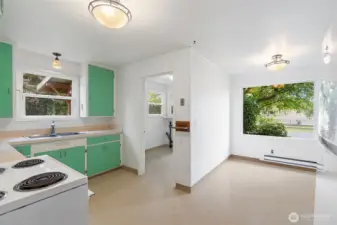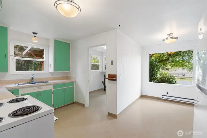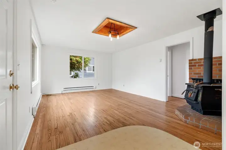 Step into a charming and thoughtfully refreshed home with timeless character. Gleaming, original wood floors lead you through the freshly painted interior, while a wood-burning stove in the living room creates a cozy focal point perfect for chilly evenings. The large picture windows fill the space with natural light, creating a bright and airy atmosphere. The attic allows additional storage. Outside, a detached garage offers convenience, and the back patio with pavers is ready for your outdoor entertaining. Located in a sought-after area, this home is close to schools, shopping, and has quick freeway access for an easy commute.