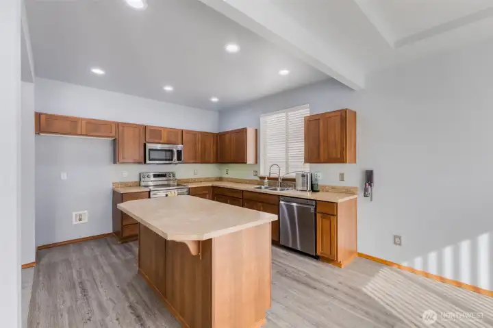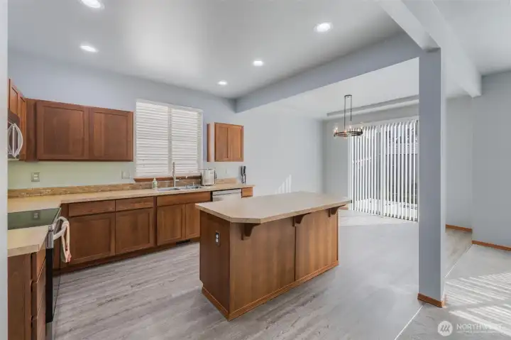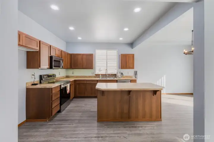 Welcome to this beautifully designed home where comfort meets style! This thoughtfully designed home features unique architectural details and an open foyer that flows into the living and formal dining rooms. The updated kitchen with island and nook opens to a spacious great room, perfect for gatherings. Luxury vinyl flooring spans the main level, with newer carpet upstairs. Enjoy the flexibility of an oversized bonus room or 4th bedroom, plus a main-floor office for work or study. Recently painted and complete with a new heat pump, sprinkler system, and vaulted ceilings. The inviting yard offers the ideal space for entertaining and relaxation!