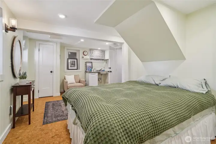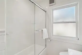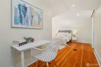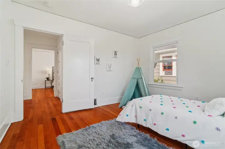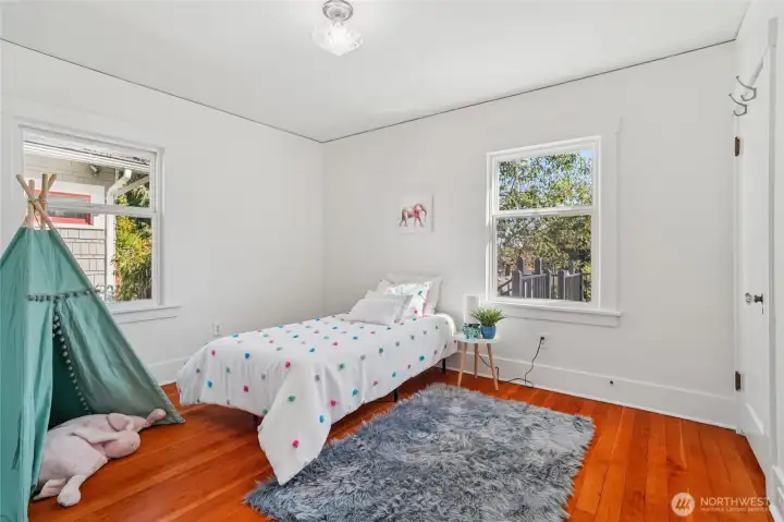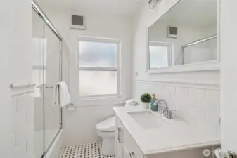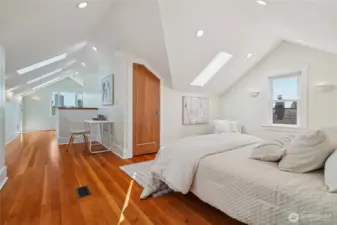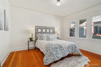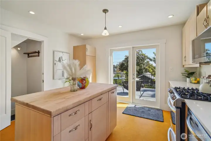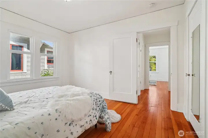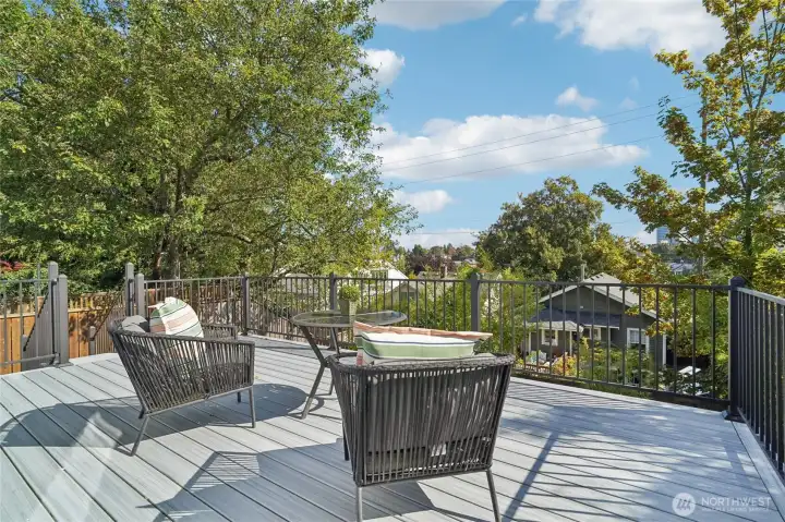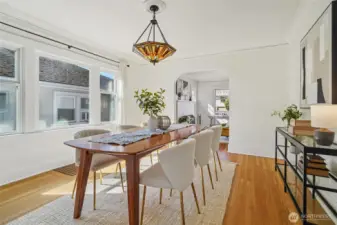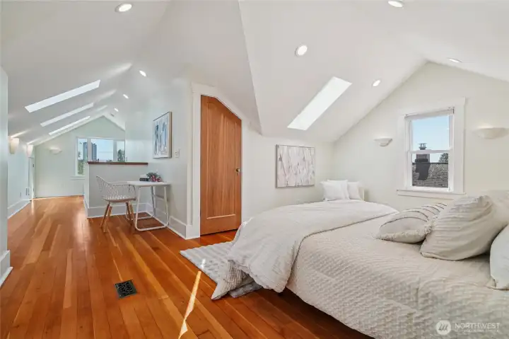 Wallingford charm and thoughtful updates shine in this beautifully maintained home. Original leaded glass, a welcoming front porch, and refinished hardwoods set the tone in this light-filled, notably quiet space given its central location. The spacious living and dining rooms connect to a bright kitchen with stainless appliances, tile backsplash, and French doors to the Trex deck. Two main-floor bedrooms share a full bath. Upstairs, the skylit primary suite includes a walk-through closet and private 4-piece relaxing bath. The lower level offers a cozy media room, laundry, and loads of storage. Permitted Airbnb studio with its own entrance will subsidize your lifestyle. New sewer line with warranty. This is the home you’ve been waiting for.