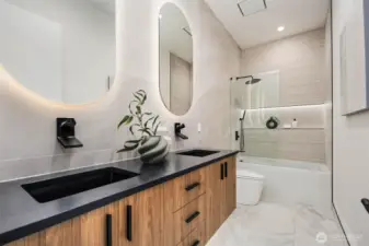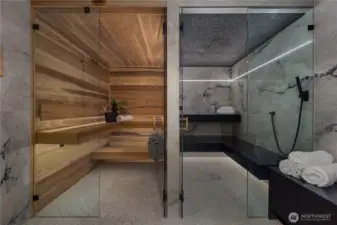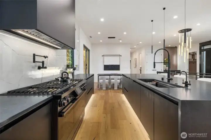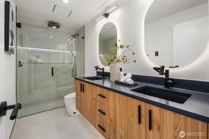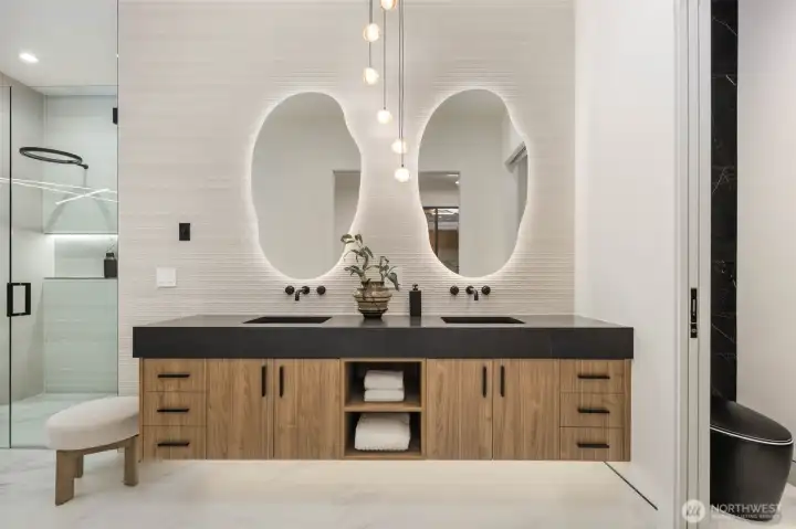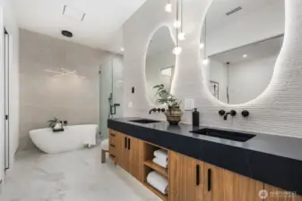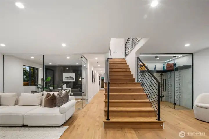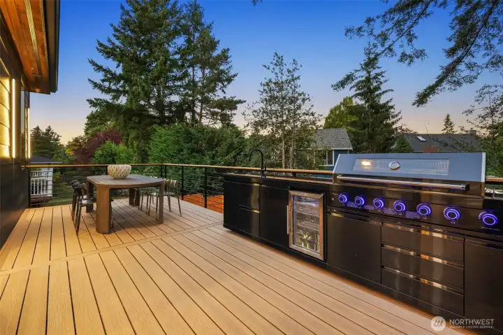 A home where every moment feels extraordinary. Light pours through soaring ceilings, illuminating spaces designed for both grand gatherings and quiet rituals. The chef’s kitchen, adorned with custom cabinetry and professional-grade appliances, inspires connection over every meal. A private office fosters creativity, a wine cellar, secondary lounge, and dual saunas invite relaxation and indulgence. Daily living is elevated with a dedicated laundry suite featuring double washers and dryers. Outdoors, an expansive deck with a full kitchen becomes the stage for celebrations under the stars. Beyond, a fully fenced yard with manicured landscaping offers privacy and serenity. Here, elegance and comfort are woven seamlessly into everyday life.