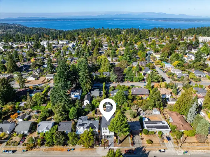 Step inside this sophisticated urban retreat & experience the seamless flow of natural light. Designed for effortless entertaining. The open-concept living area leads to a sunny west-facing deck, creating a perfect indoor-outdoor space. The heart of the home is a stylish kitchen, featuring a generous island that encourages everyone to gather. Upstairs, the tranquil primary suite offers a spa-like designer bathroom, a spacious walk-in closet and stunning views of Mt. Rainier. Two additional bedrooms and laundry area offer comfort and convenience. The garage has ample storage w/EV charger. Savor living on a quiet street only minutes away from the Interurban Trail & the boutiques, restaurants & lively atmosphere of Greenwood & Phinney Ridge.