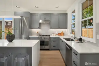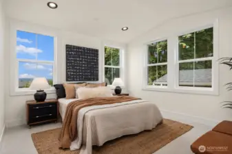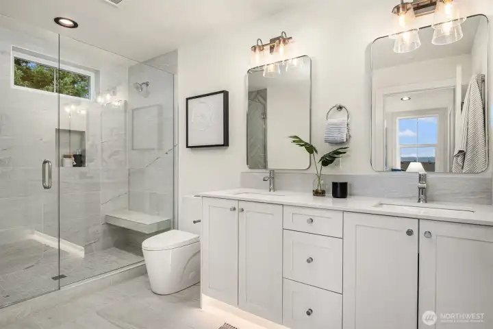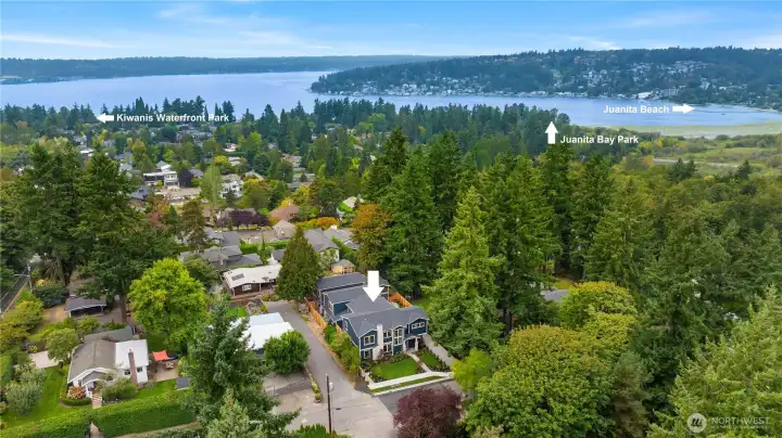 Exceptional value for new construction w/Lake views in the coveted Norkirk community! Nestled on a quiet dead-end street, this captivating residence boasts an inviting interior loaded w/chic designer finishes. Convenient floorplan features open concept gathering spaces, stylish chef’s epicurean kitchen & spacious upper level providing 2BRs/2BAs. Thoughtfully crafted layout includes luxurious primary suite w/westerly views of Lake WA & stunning sunsets, dedicated laundry rm & rare 2-car tandem parking. Sought-after East of Market location in one of the premier communities on the entire Eastside: just steps from incredible parks & award-winning Lake WA schools, w/easy access to vibrant shopping/dining, DT Kirkland waterfront & Juanita Village