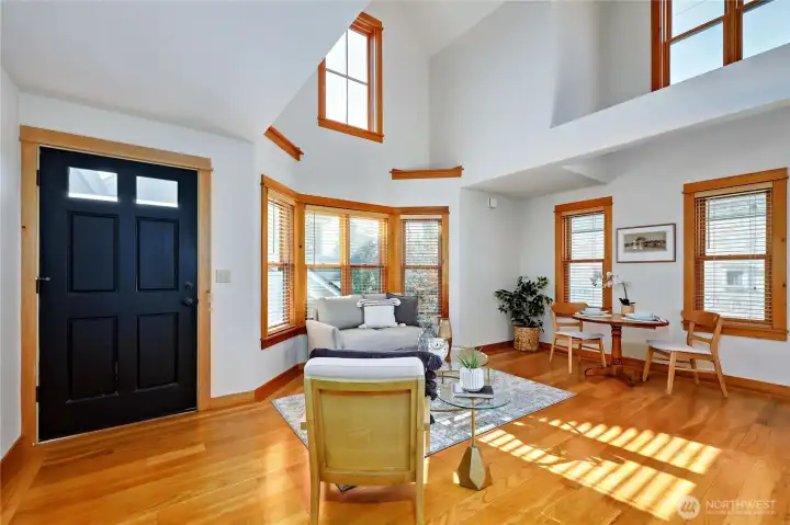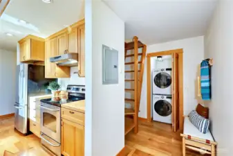 This charming, light-filled condo sits in the heart of Port Townsend’s Historic Uptown, walkable to just about everywhere. Steps from shops, restaurants & the farmers market. Featuring an open floor plan, 1 bedroom/1 bath plus a spacious loft. Oak floors, dramatic vaulted ceilings, custom woodwork & dramatic architecture provide elevated design. The bathroom has radiant floor heating, while the bedroom boasts a generous walk-in closet. This home is an ideal Port Townsend landing spot combining character, comfort & unbeatable convenience.