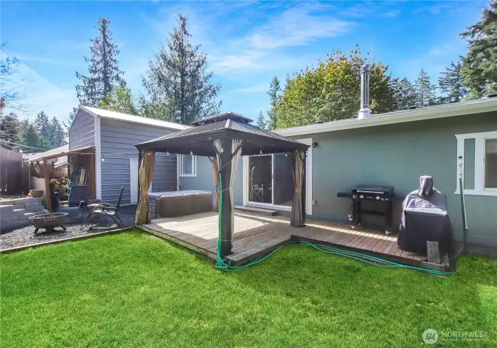 Beautifully Upgraded 1-Story in Single Tree Estates! This open-concept home features a custom kitchen island, stainless appliances, built-in desk, and bay windows. Recent upgrades include a brand new roof, interior/exterior paint, custom master closet, and redesigned backyard with new retaining wall and sod. Relax in the spacious primary suite with soaking tub and walk-in. Outside: covered patio, outdoor bar, hot tub, and ample RV/boat parking. Plus, a massive 2-story workshop with 220 power, new loft & stairs, and storage galore. Community offers lake access, boat launch, sport court, and trails. Easy access to JBLM, I-5, Lacey & Olympia.
