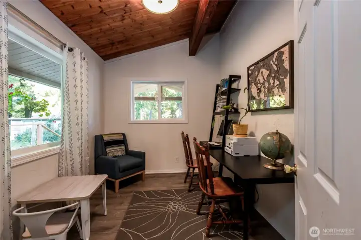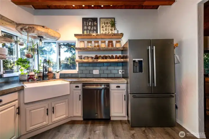Beautifully remodeled waterfront retreat on Garrison Bay! This 1,248 sq ft home offers 2 bedrooms, 2 baths, and an office, on a private .75-acre lot with ~130 ft of low-bank water frontage with tideland rights. Enjoy your own inner harbor private dock, a sunken firepit with plenty of seating, and a deck perfect for enjoying views of the bay and English Camp. This property also features a charming detached guest quarters with a murphy bed, a greenhouse, fruit trees, chicken coop, pump house, RV parking with power hookup, and an amazing treehouse among the tall cedars. Perfect for year-round living or a peaceful island getaway surrounded by nature and bay views.
