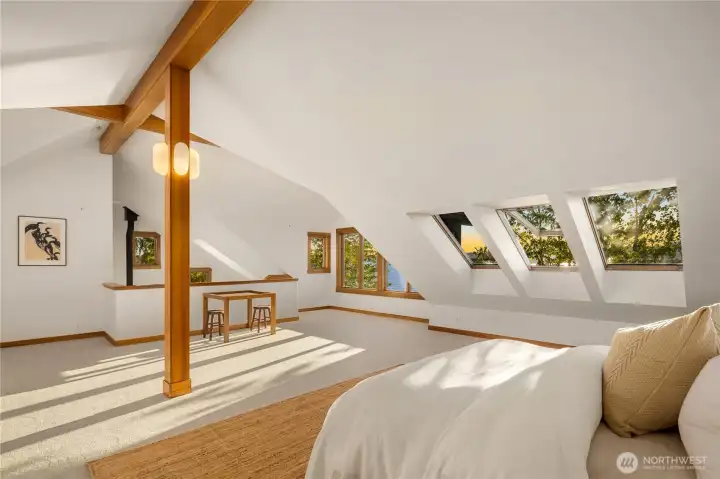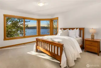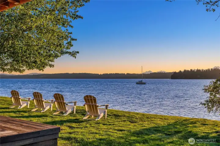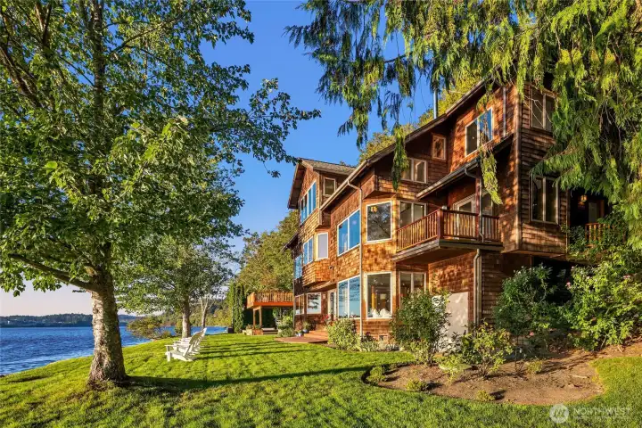 EXTRAORDINARY VIEWS, PRIVACY, SIZE & WATERFRONTAGE AT AN EXTRAORDINARY PRICE! West-facing waterfront with Olympic Mountain views, with total privacy, located at the end of a private drive in coveted Seabold/Manzanita. 200'+ of bulkheaded low-bank shoreline with a rare beach cove & mooring buoy. Created by beloved island architect Mack Pearl, this NW beach lodge–style home brings rustic elegance together with the spirit of an endless vacation. There is space for everyone with 4,000+ sqft across 3 stories, 4 beds, 5 baths, including an attached 900 sqft 1-bed wing with private entry through a 2nd driveway & its own kitchen, bath, living room & W/D. Pre-inspected and meticulously maintained by the original owners. Priced below Assessed Value!