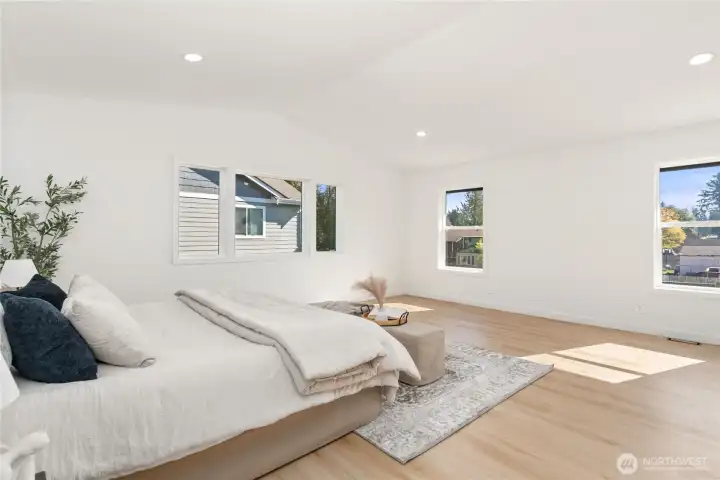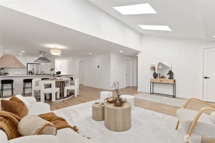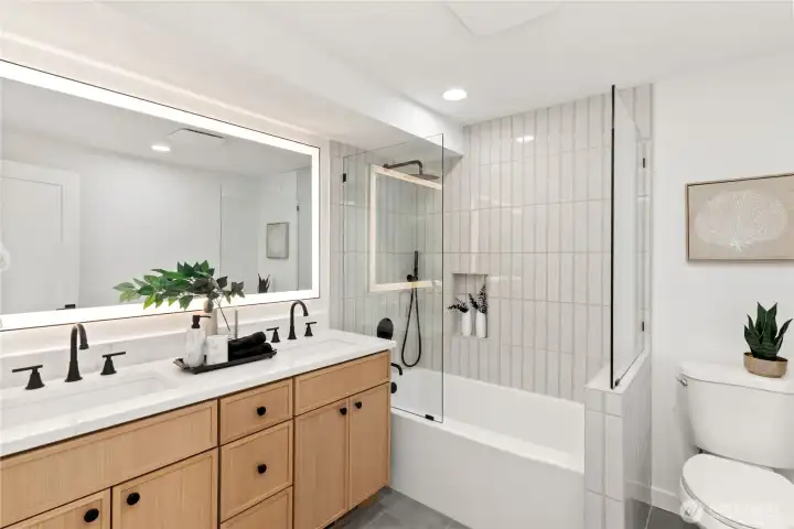Stunning must-see home featuring RV parking,500 sq ft Trex deck w/8-person hot tub,&fully fenced yard.Main level offers vaulted ceilings,updated kitchen w/quartz countertops,full tile backsplash,custom cabinets,&SS appliances.2 bedrooms on main floor,custom utility room w/dog wash station,&tankless water heater.Spacious family room opens to large deck perfect for entertaining.Upper level features oversized primary suite w/custom tile work,walk-in shower,plus additional bedroom & guest bath.Front yard highlights a rare Japanese Maple tree,&property includes 8x18 storage shed.Conveniently located near light rail station,shopping,beaches,&parks.Move-in ready w/thoughtful upgrades throughout - this home combines modern comfort,functionality.