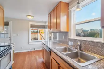 Quit your long drive and come home to rest in this lovely Greenlake home with 3 bedroom, 1.75 bath, hardwood floors and recently updated kitchen. Extra rooms for office, exercise, den, storage etc. Includes detached 2 car garage with additional off street parking. This home is on the bus line and close to downtown, shopping, schools and an easy walk to Green Lake. Zoning has recently changed which allows great potentail for investors. Room to add a DADU or redevlope completely.