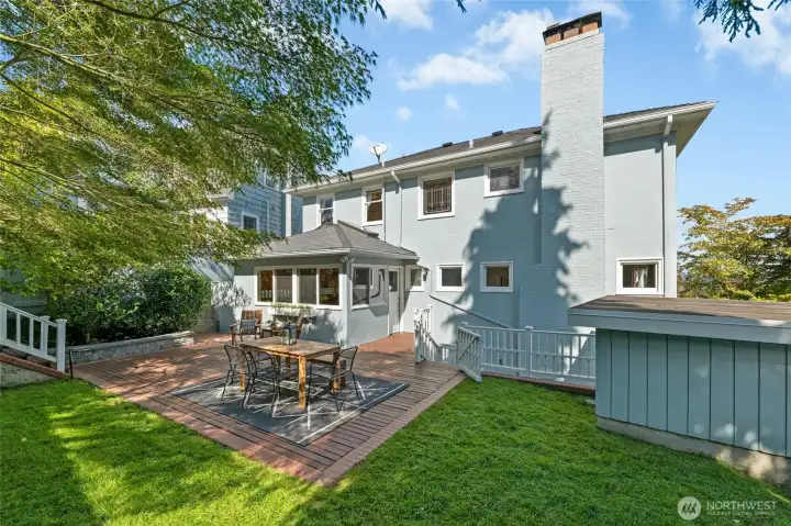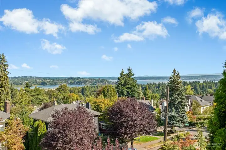 Stately, well maintained 1920's Colonial combines captivating views with ease of access! Take the stairs from Crescent or better yet, park in the two-car garage in the private alley and find just a few steps lead to a sunny backyard, patio and directly into the kitchen with eating nook and timeless finishes. Upstairs, three bedrooms and two bathrooms including a primary suite with balcony to showcase storybook PNW lake, mountain and territorial vistas. The comfortable lower level hosts a large family room, guest suite, storage, laundry and utilities. There is additional storage in the attic for all of your keepsakes. Interlaken Park is at your doorstep, and Volunteer Park 4 blocks west this is where the city and nature harmoniously unite.