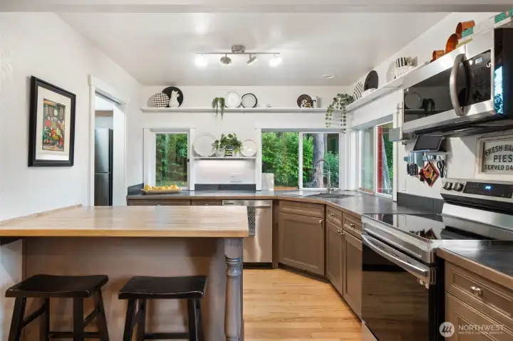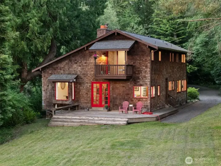 Bainbridge Island retreat. Nestled in the storybook charm of Port Madison’s North End, this welcoming country home blends rustic warmth w/modern comfort. Offering 4 bedrooms, 1.75 stylish baths, + 350 sq. ft. bonus room, for a studio, office, or media. Inside, enjoy refinished wood floors, fresh paint, new carpet, & fully updated kitchen w/ sleek cabinetry, countertops, and appliances. To add to the country charm is the beautiful wood cookstove. Step outside to expansive decks, be captivated by the wildlife that surrounds the pond, and fruit trees frame the peaceful territorial views. Set on 2.39 pvt acres. this special property is serene, and full of old Bainbridge charm 5 miles to the ferry/Winslow Way, & 17 mins to Poulsbo.
