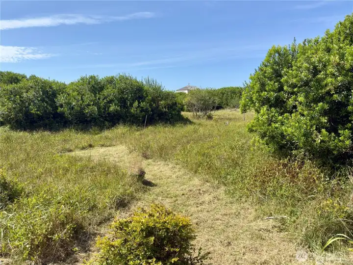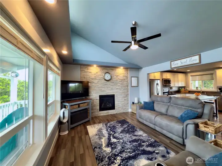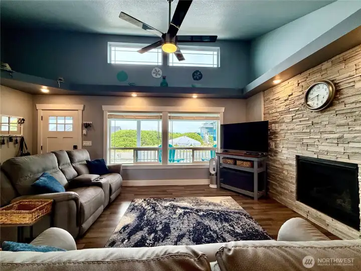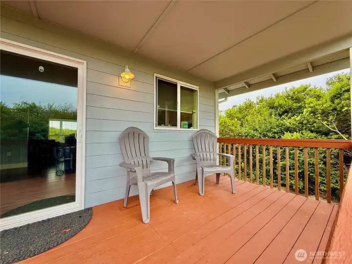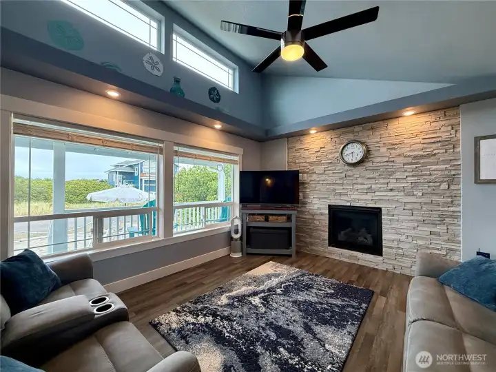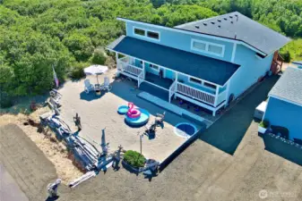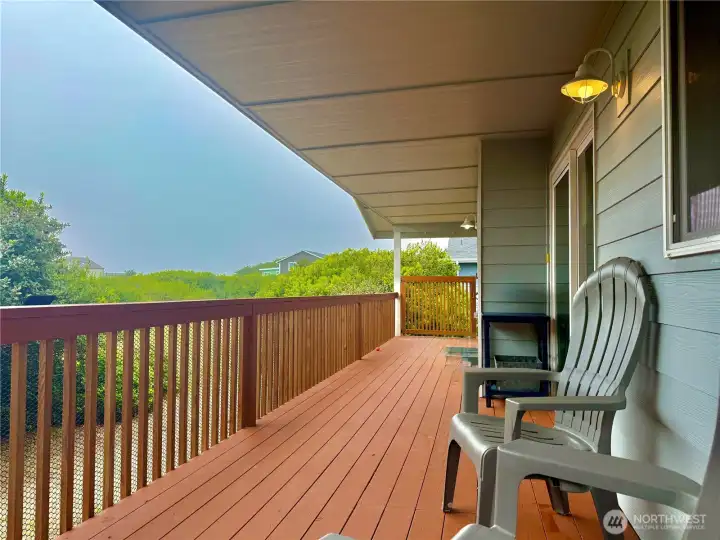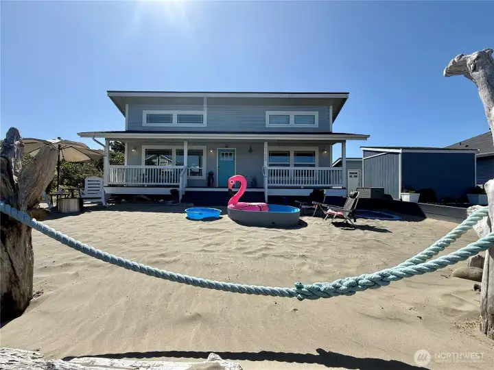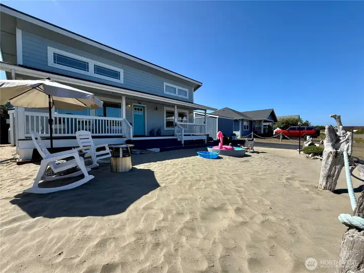 Beautifully maintained home on nearly 15,000 sq ft of land, nestled in a peaceful, walkable neighborhood just a short stroll to beach. Front yard is truly one-of-a-kind; filled w/soft beach sand creating a private, playful retreat when combined w/the adjoining parcel. Enjoy year-round living on full-length covered decks in the front & back, perfect for morning coffee or sunset relaxation. Back deck overlooks a natural buffer, w/direct access to quaint trails through the adjoining parcel—ideal for a play fort, added privacy, or future expansion. Inside, quality finishes, including quartz countertops, SS appliances, smart W/D, propane stone fireplace, LVP & tile flooring. Two storage sheds offer ample space for beach toys!