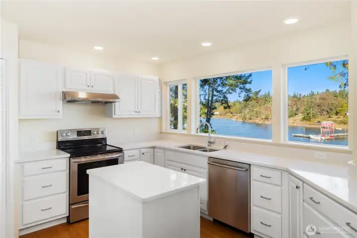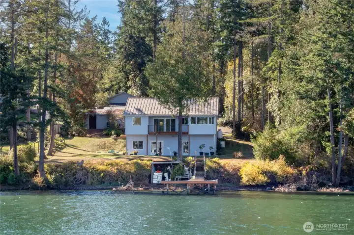Rare Marrowstone Island waterfront home with private dock and mooring buoy- one of only a handful in the county! Thoughtfully built in 2015 for comfortable single-level living, this 2-bedroom home features bamboo floors, a light-filled kitchen with sweeping views and a primary 4 piece suite with walk-in closet. The opposite wing offers a guest room, office, full bath, and laundry. The unfinished daylight basement with ¾ bath provides space to expand and finish to your vision. Two detached garages offer room for hobbies, storage, or a boat shop. Experience effortless waterfront living with direct bay access, paddle across to the Nordland General Store for your morning coffee.